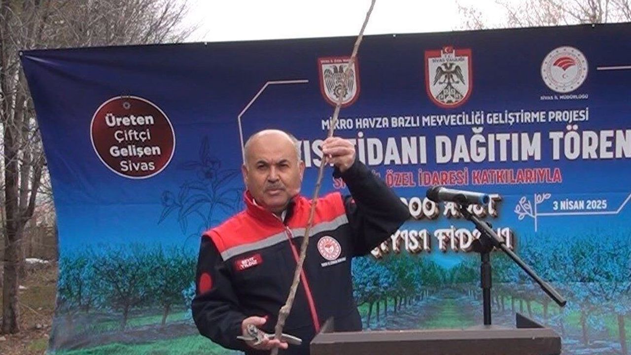Fidan dağıtım töreninde konuşan Sivas İl Tarım ve Orman Müdürü Seyit Yıldız, "Müdürlüğümüz tarafından hazırlanan ‘Kayısı Üretiminin Artırılması Projesi’ İl Özel İdaremiz tarafından finanse edilmiştir. Proje kapsamında fidan bedelinin yüzde 75’i İl Özel İdaremizce sağlanmış, yüzde 25’i çiftçi katkısı olarak karşılanmıştır. Kayısı üretiminde dünyada 1’nci olan ülkemizde Malatya, Elazığ, Adıyaman, Maraş gibi illerden sonra ilimiz üretimde 10. Sırada yer almaktadır. Gürün ilçemiz ve Kangal ilçemizin bazı bölgelerinde mikro klima gösteren alanlarda Kayısı yetiştiriciliğinin yaygınlaştırılması amacıyla projemiz uygulanmaktadır. Bahçe tesisinde en önemli konu fidandır. Dikimi yapılacak fidanlar sağlıklı, hastalıktan ari, çeşit özelliğini yansıtan ve sertifikalı olması gerekir. Fidanlarımızın üreticilerimize hayırlı ve bereketli olmasını diliyorum" dedi.