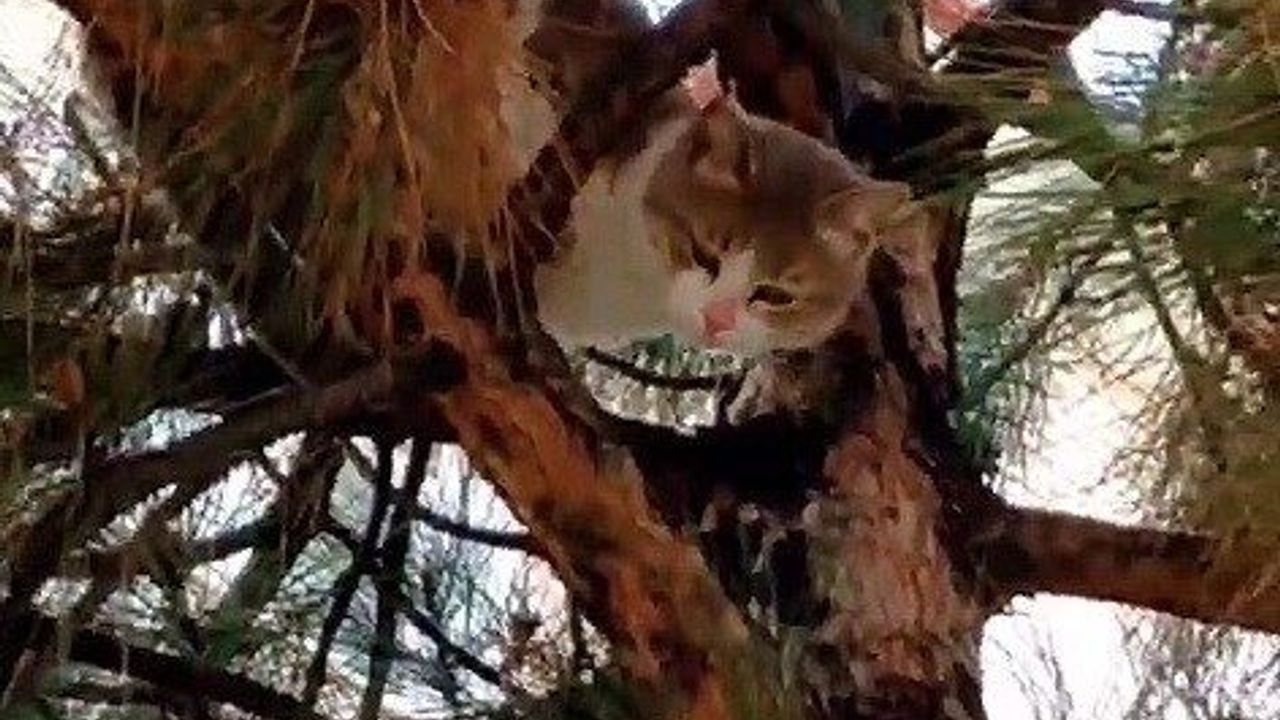 Çorum’un Sungurlu ilçesinde çıktığı ağaçta mahsur kalan kedi, polis ve itfaiye ekiplerinin müdahalesiyle kurtarıldı.