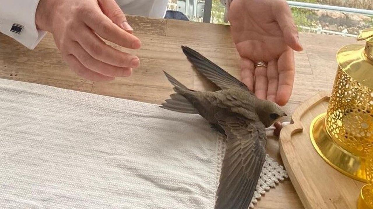 Bütün ömrünü uçarak geçirmesiyle bilinen ebabil kuşunu balkonunda gören Galip Uzun, uçamayacak durumda olan misafirini bir süre beslemeye çalıştı.