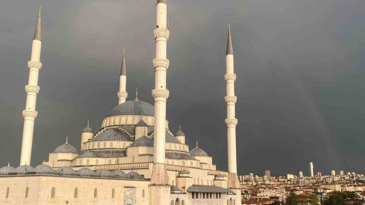 Ankara’nın Çankaya ilçesinde sağanak sonrası gökyüzünde oluşan gökkuşağı kartpostallık görüntüler oluşturdu.