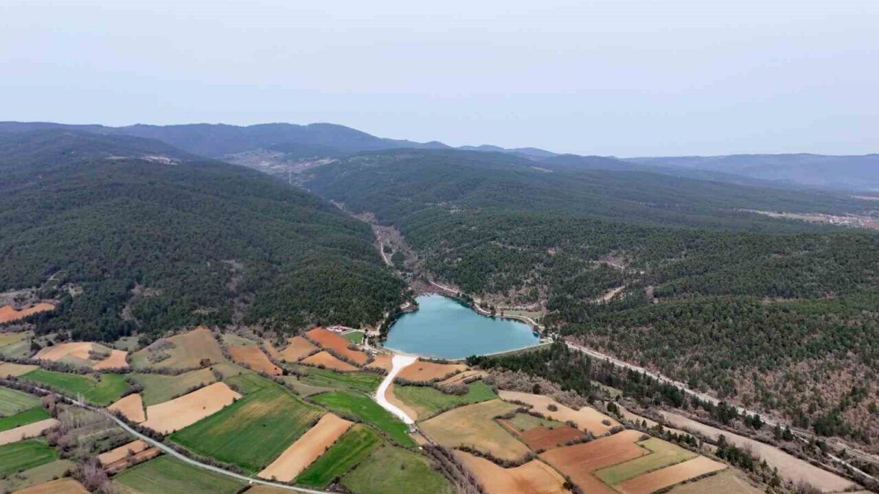 Kastamonu’da baharın gelmesiyle ayrı bir güzelliğe bürünen gölet, köy ve ormanlar havadan görüntülendi.