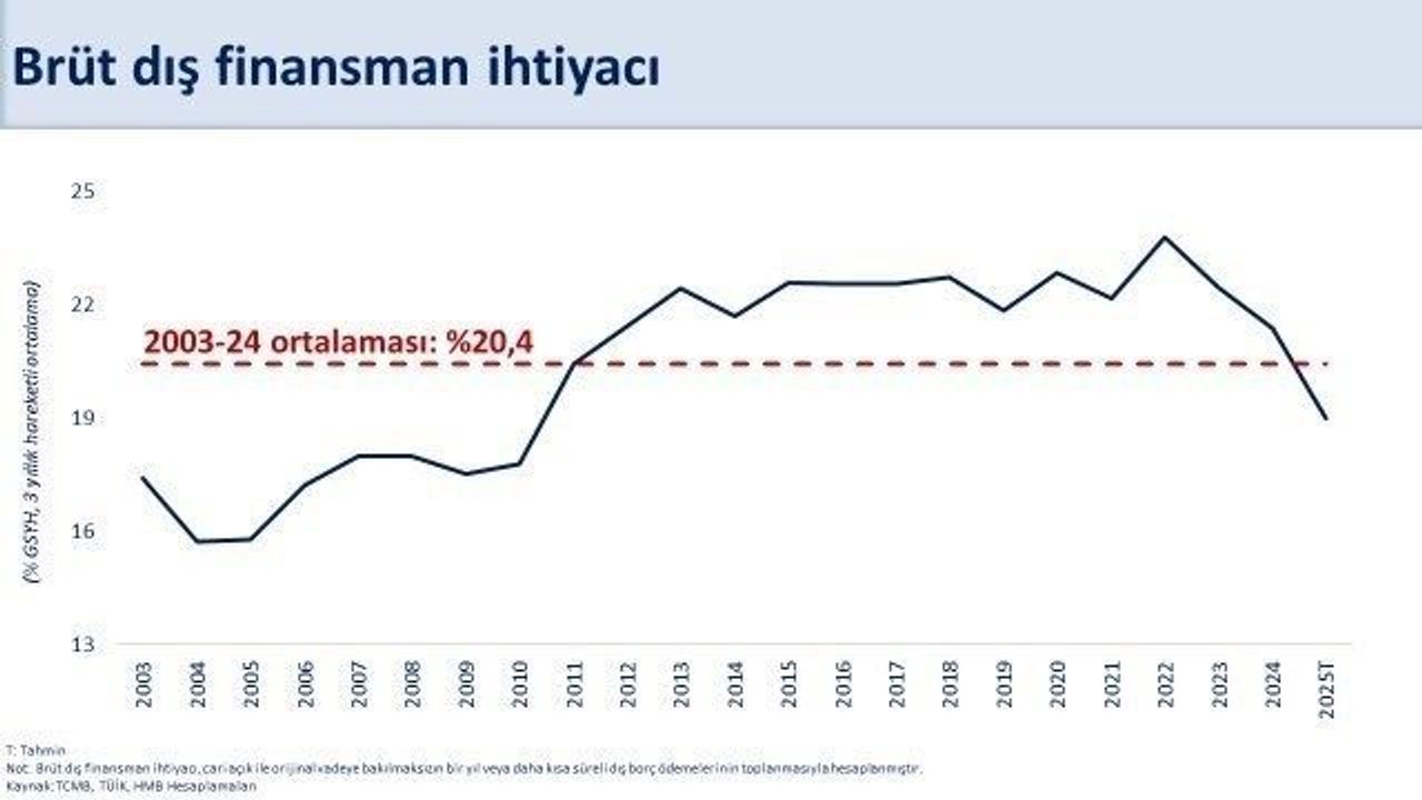 Cari açığın sürdürülebilir seviyelerde kalması, brüt dış finansman ihtiyacının milli gelire oranındaki düşüş eğiliminin süreceğine işaret ediyor.