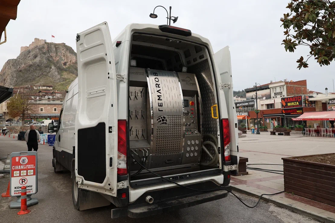 Tokat Belediye Başkanı Mehmet Kemal Yazıcıoğlu, Meydan Cami bölgesinde gerçekleştirilen deneme çalışmalarını yerinde inceleyerek yeni araç hakkında teknik bilgiler verdi.