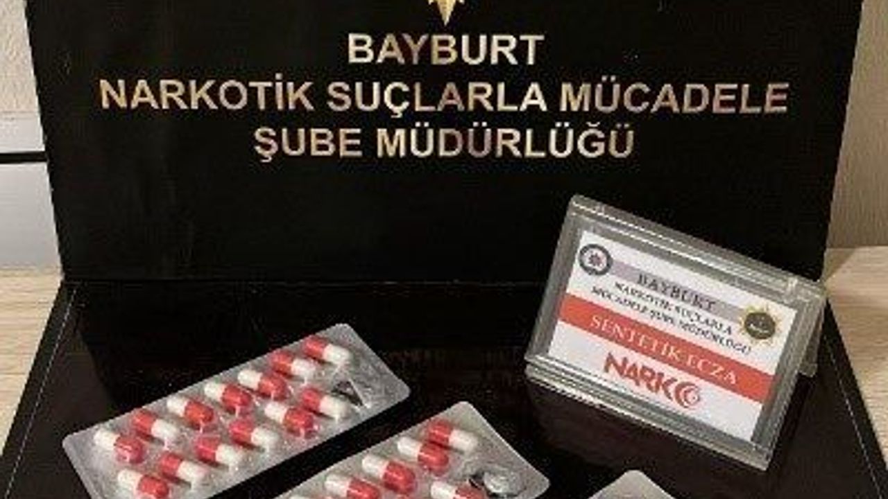 Bayburt İl Emniyet Müdürlüğü Narkotik Suçlarla Mücadele Şube Müdürlüğü görevlilerince durdurulan araç içerisindeki T.B. isimli şahıs üzerinde yapılan adli aramada 25 adet sentetik ecza maddesi, S.G isimli şahıs üzerinde de bir adet ruhsatsız tabanca, tabancaya ait şarjör ve fişek ele geçirildi. Bununla birlikte durumundan şüphelenilen İran uyruklu A.S.G isimli şahıs üzerinde yapılan incelemeler neticesinde 18 adet sentetik ecza maddesi bulundu. Şüpheliler hakkında adli işlem yapılarak, gerekli tahkikat başlatıldı.