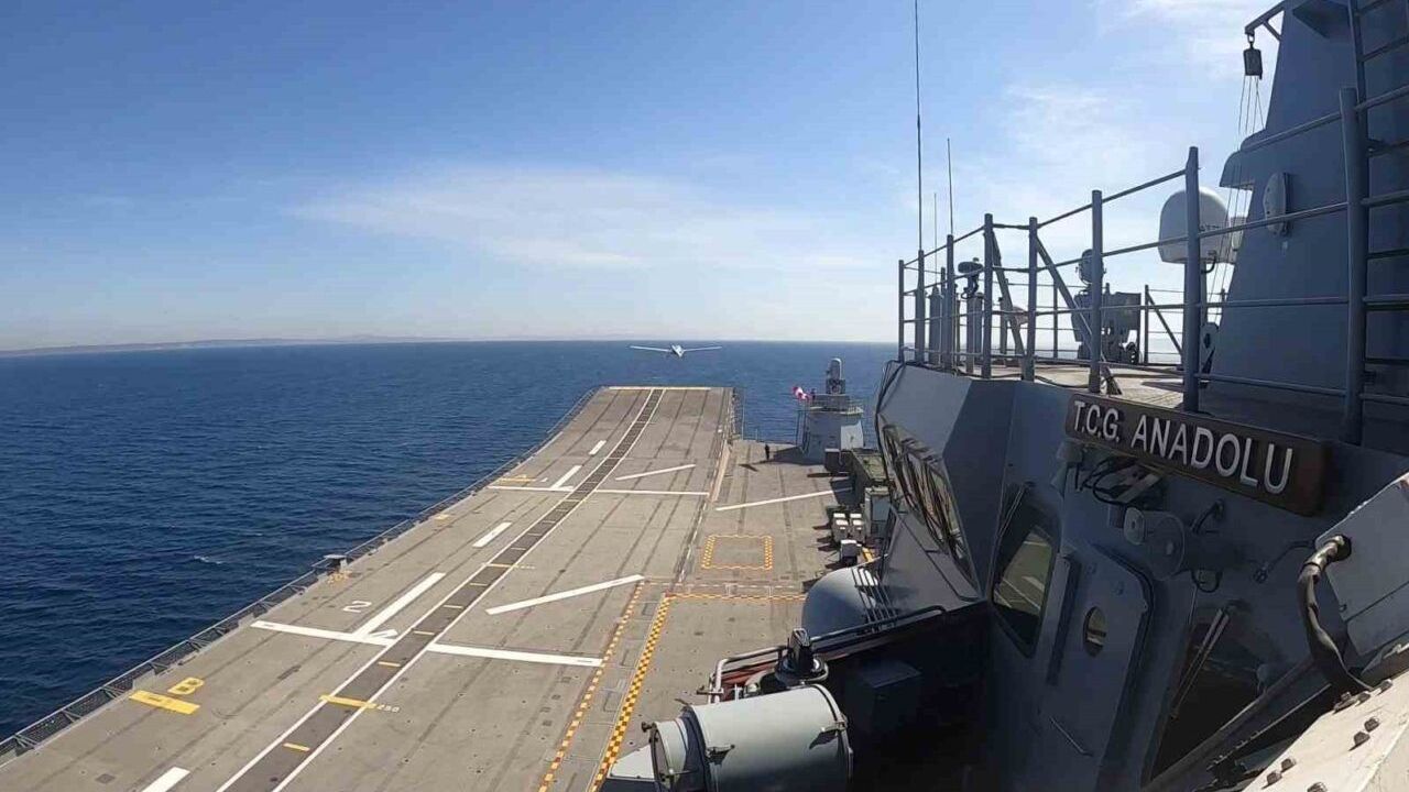 Havacılık tarihinde bir ilke imza atarak kısa pistli bir gemiden iniş kalkış yapan ilk SİHA olan Bayraktar TB3, TCG Anadolu’da dün yapılan uçuş testinde iki kez daha başarıyla iniş kalkış gerçekleştirdi.