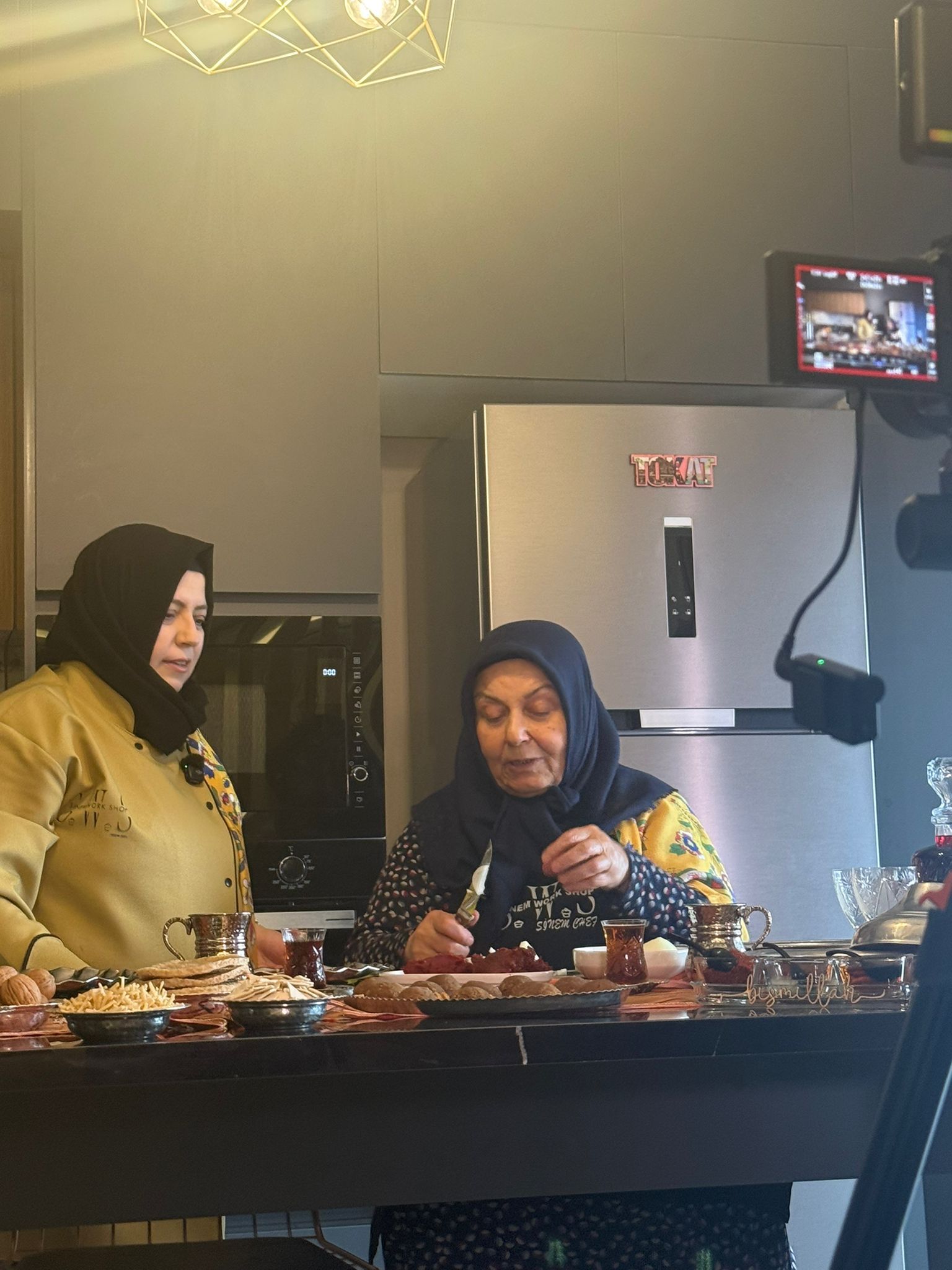 Tokat kültürünü ve geleneksel mutfağını yaşatmanın önemine değinen Sinem Şef, “Programımızda Tokat mutfağının geleneksel lezzetlerine yer vererek birlikte yöremize ait tarhana çorbasını ve yoğurtlu tarhana çorbasını hazırladık. Aynı zamanda Müfide teyzemizin yokluk zamanlarına dair hatıralarını dinledik ve o dönemlerden bugüne uzanan, eskiden beri yaptığı ekmek aşı yemeğini birlikte yaptık. Kültürel mirasımızı yaşatmak adına program boyunca Tokat’ımıza özgü birçok değeri ele aldık. Geleneksel basma tekniğini, basma ile örtü basımını ve Tokat’a ait peşkir örtüsünü işleyerek peşkir üzerine baskı yapımını anlattık. Bunun yanı sıra meşhur çöreklerimizi, köy ekmeğimizi, geleneksel bebek kültürünü ve o bebeklere ait kıyafetleri konuşarak geçmişin izlerini günümüze taşıdık. Takunyalarımızdan bahsederek eski yaşam kültürünü de izleyicilerimizle paylaştık. Ayrıca Tokat’ta Ramazan hazırlıklarının nasıl yapıldığını, evlerde imece usulü hazırlanan yufkaları, makarnaları ve erişteleri ele alarak geçmişin bereketli mutfak geleneğini Müfide teyzemizin samimi anlatımıyla yeniden yaşadık. Tokat kültürünü, geleneksel mutfağını ve geçmişin değerlerini yaşattığımız bu güzel program, hem öğretici hem de çok keyifli geçti. Değerli katkıları, samimi sohbeti ve kıymetli paylaşımları için Müfide teyzemize gönülden teşekkür ediyoruz." Dedi.