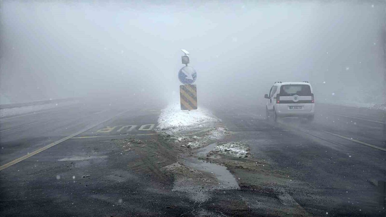 Türkiye’nin önemli geçiş noktalarından biri olan TEM Otoyolu ve D-100 kara yolunun Bolu Dağı geçişinde etkili olan hafif kar yağışı ve sis sebebiyle görüş mesafesi yaklaşık 25 metreye kadar düştü.