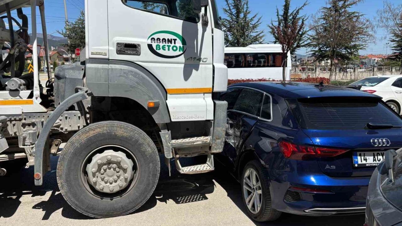Kaza, Beşkavaklar Mahallesi mevkii İzzet Baysal Devlet Hastanesi Bulvarı üzerinde meydana geldi. Edinilen bilgiye göre, yol kenarından geri manevra yapan Zekai K. yönetimindeki 14 GD 029 plakalı beton mikser, Esranur Y. idaresindeki 14 ACY 112 plakalı otomobil ile çarpıştı. Kazada otomobil sürücüsü hafif yaralandı. İhbar üzerine olay yerine sağlık ve polis ekipleri sevk edildi. Hafif yaralı Esranur Y.’ye sağlık ekipleri ambulans içerisinde müdahalede bulundu. Kaza nedeniyle aksayan trafik otomobilin çekici ile kaldırılmasıyla normale döndü. Kazayla ilgili inceleme başlatıldı.