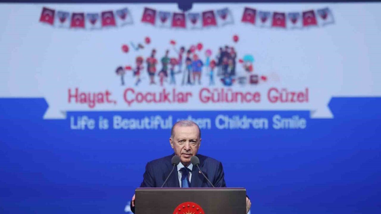 Cumhurbaşkanı Recep Tayyip Erdoğan, Beştepe Millet Sergi Salonu’nda düzenlenen TRT 47. Uluslararası 23 Nisan Çocuk Şenliği programında konuştu. 23 Nisan Milli Egemenlik ve Çocuk Bayramı vesilesiyle 30 ülkeden gelen çocukların da aralarında bulunduğu minikleri misafir etmekten memnuniyet duyduğunu dile getiren Cumhurbaşkanı Erdoğan, "Ülkemizde bulunmanızdan, sevincimize ortak olmanızdan dolayı hepinize tek tek teşekkür ediyorum. Bu salondaki evlatlarımızdan başlayarak ülkemizin ve yeryüzünün dört bir yanındaki tüm çocukların 23 Nisan Milli Egemenlik ve Çocuk Bayramı’nı tebrik ediyorum. Bu bayramı sizlere armağan eden Gazi Mustafa Kemal Başta olmak üzere tüm devlet büyüklerimizi, şehit ve gazilerimizi şükranla iade ediyorum" dedi.