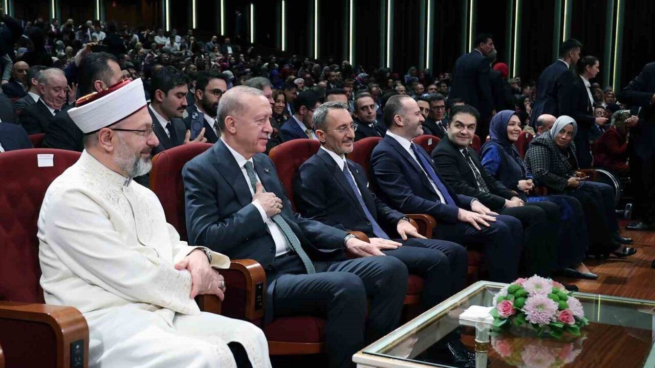 "Peygamber Efendimizin aleyhissalatü vesselam bize en büyük mirası olan Kur’an ve sünnetin ışığında yeni bir sayfa açmamız, aramızdaki anlaşmazlıkları bir an önce çözüme ulaştırmamız icap ediyor." diyen Erdoğan, "Bakın şunu da tüm samimiyetimle söylüyorum. Yakın bir tarihe kadar dünyaya nizam veren geçmişimize baksak, İslam’ın nuruyla yeryüzünü aydınlatan üç kıta yedi iklimde adaleti şefkat ve merhameti hakim kılan ecdadın izinden gitsek inanın bu bile bizim için çok önemli bir başlangıç olacaktır. Kur’an yolunu takip eden, sünnet ve sireti bir zırh gibi giyinen siz kıymetli gençlerimize birlikte gelecek nesillerin daha adil bir dünyayı mümkün kılacağına yürekten inanıyorum. Tıpkı sizler gibi medeniyet coğrafyamızdaki milyonlarca gencin inşallah içinde bulunduğumuz bu asırda Türkiye yüzyılında iyilik ve adaleti yeniden ihya edeceğinden hiç şüphe duymuyorum." diye konuştu.