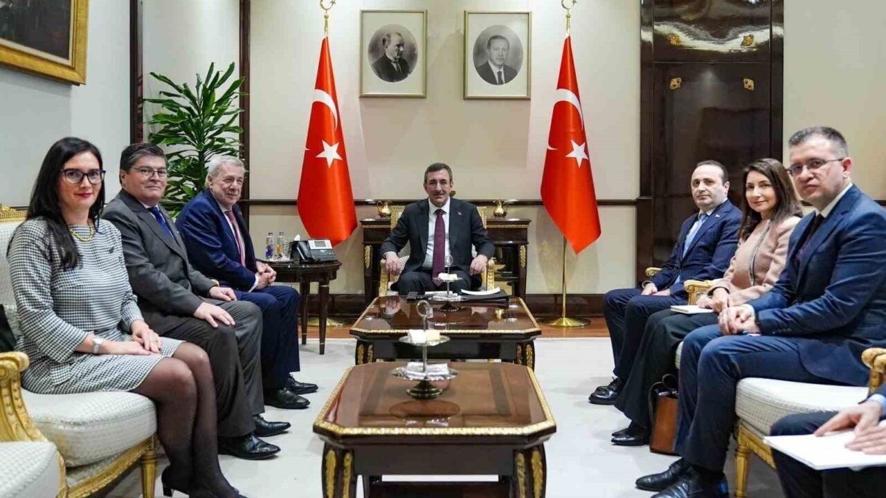 Cumhurbaşkanı Yardımcısı Cevdet Yılmaz, Şili Dışişleri Bakanı Alberto van Klaveren ile Cumhurbaşkanlığı Külliyesi’nde bir araya geldi. Yılmaz, görüşmede Türkiye ve Şili’nin diplomatik ilişkilerinin 2026 yılında 100. yılı olması kapsamında yapılacak etkinlikler, ekonomik ve ticari iş birliği, savunma sanayii alanındaki ortaklıklar, parlamentolar arası temaslar, Antarktika’daki çalışmalar ile turizm ve spor alanlarındaki iş birliği fırsatlarını değerlendirdiklerini belirtti. Yılmaz, "Türkiye olarak, Şili ile ilişkilerimize büyük önem veriyor, bu yapıcı diyaloğun iş birliğimizi daha da güçlendireceğine inanıyoruz. Nazik ziyaretleri ve samimi iş birliği yaklaşımı için Sayın Klaveren ve heyetine teşekkür ediyorum" dedi.