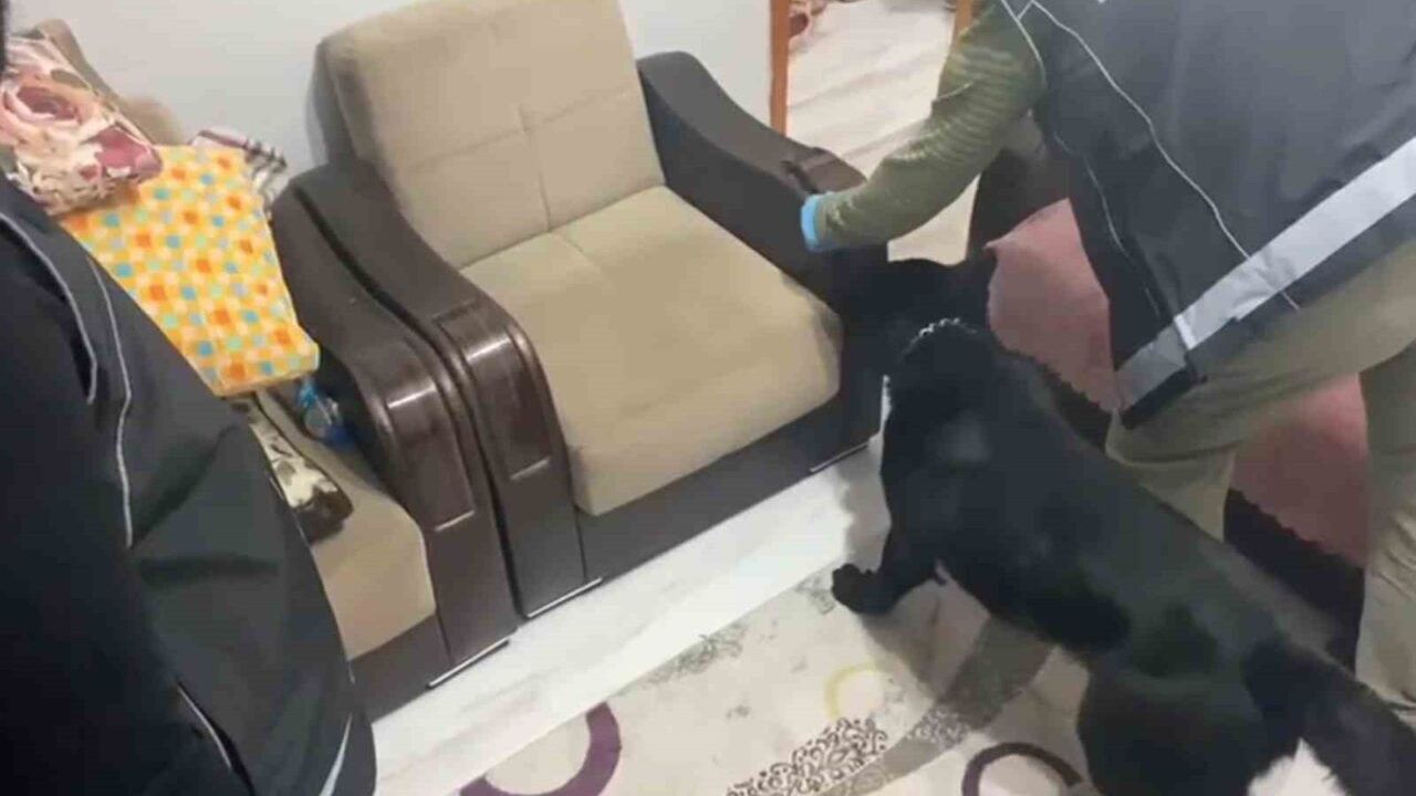 Samsun’da evdeki koltuğa zulalanmış 800 gram metamfetamini narkotik köpeği Tony buldu.