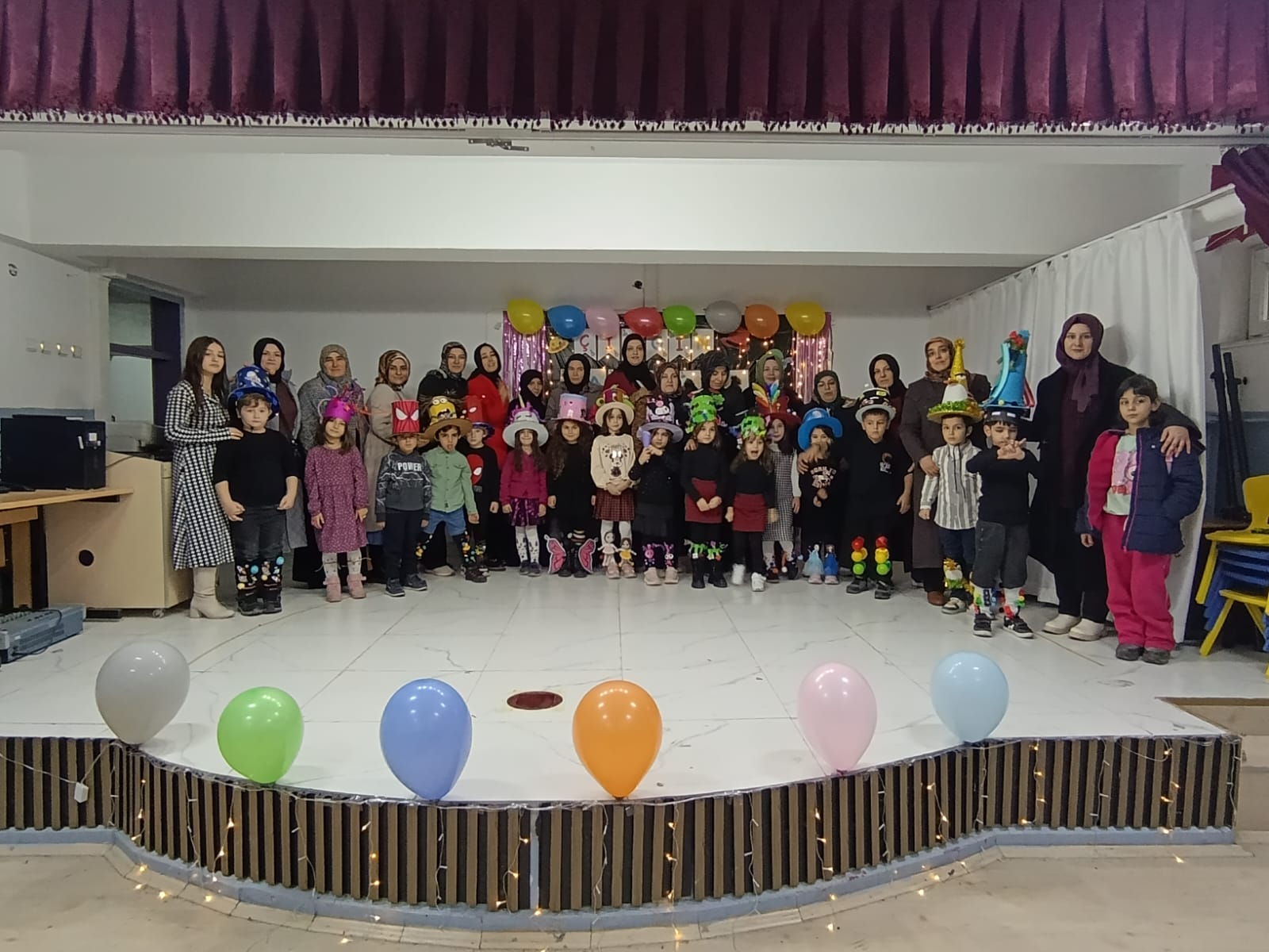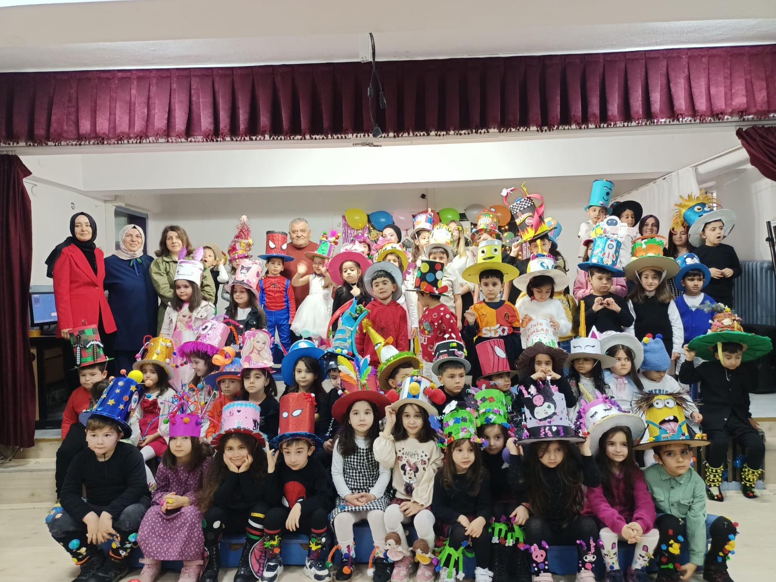 Okul öncesi öğretmenleri; Leyla Erdemir, Aysel Hızlı Yıldız ve Selma Türk’ün koordinesinde düzenlenen etkinliğe, veliler de yoğun ilgi gösterdi. Sabahın erken saatlerinden itibaren büyük bir özenle hazırlanan minik öğrenciler; el emeği göz nuru, sıra dışı şapka tasarımları ve rengarenk, desenli çoraplarıyla okul koridorunda defile yaptı.