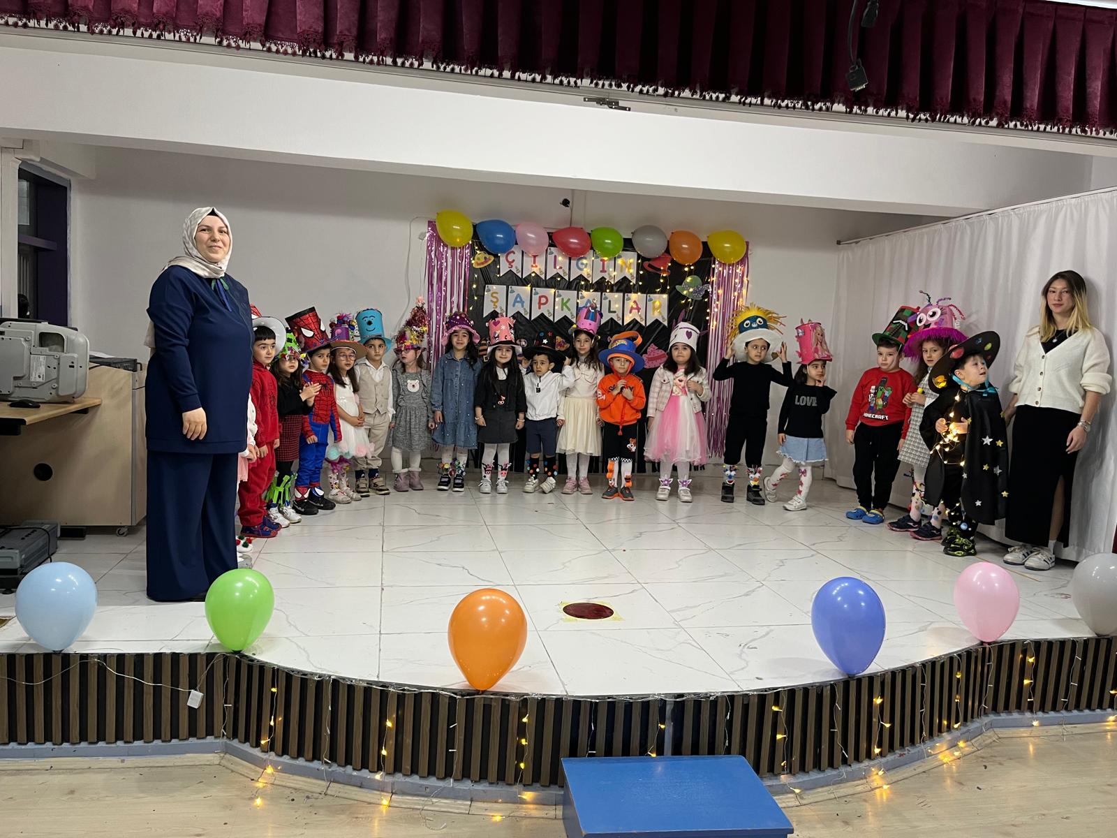 Kendi hazırladıkları birbirinden ilginç şapkaları ve desenli çoraplarıyla okul koridorlarında yürüyen minikler, hem eğlendi, hem de yeteneklerini sergileme fırsatı buldu.