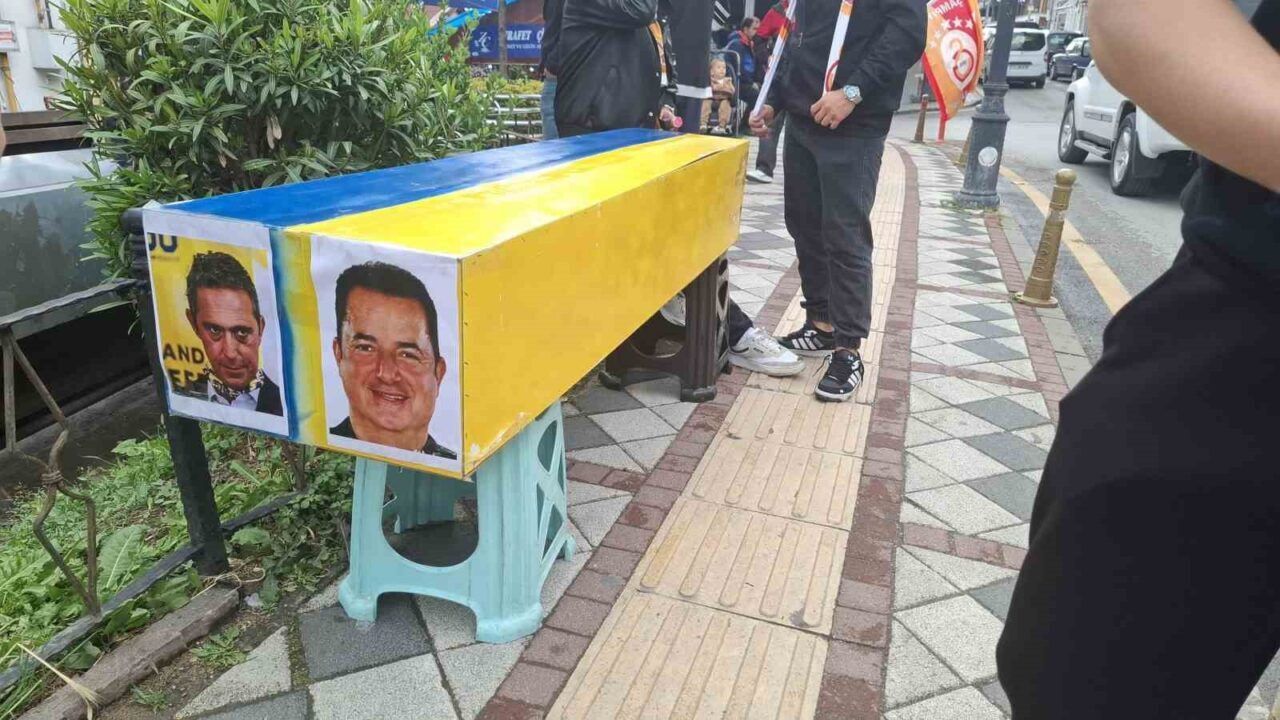 Bartın’da bir grup Galatasaray taraftarları Kayseri maçı öncesinde Fenerbahçe’nin forma renklerinde tabut hazırlayarak tekbirlerle yürüdü.