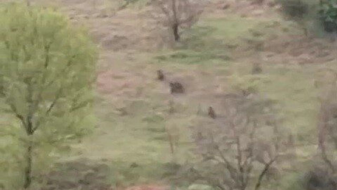 Başköy köyü istikametinde ilerleyen araçtakiler, yola çıkan iki ayıyla karşılaştı. Ayılar, aracın önünde bir süre koşarak kaçmaya çalıştı. Daha sonra yol kenarındaki yamaca tırmanan ayılar, karanlıkta gözden kayboldu.