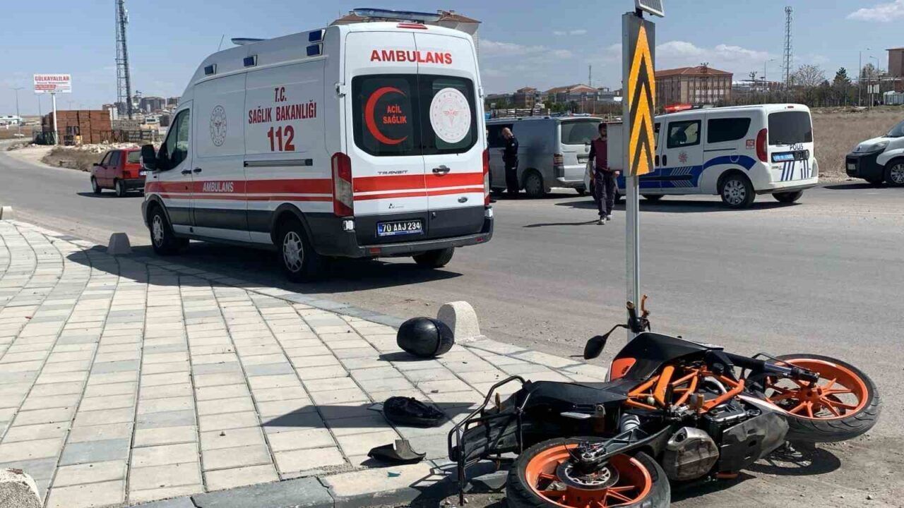 Karaman’da kontrolden çıkarak devrilen motosikletin sürücüsü ölümden döndü.
