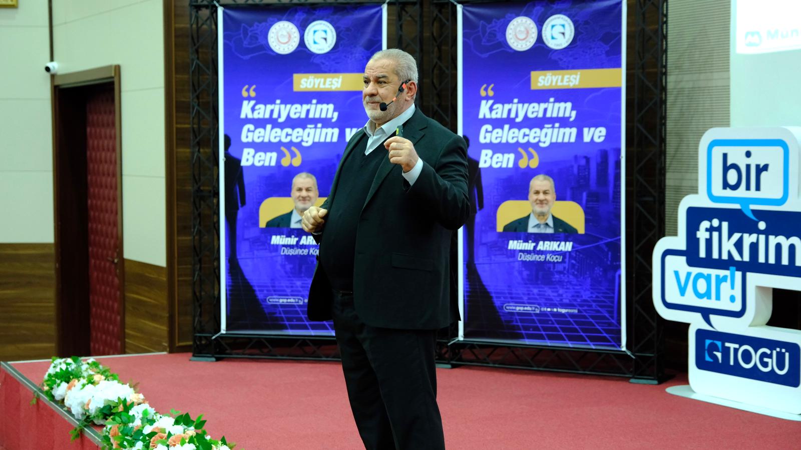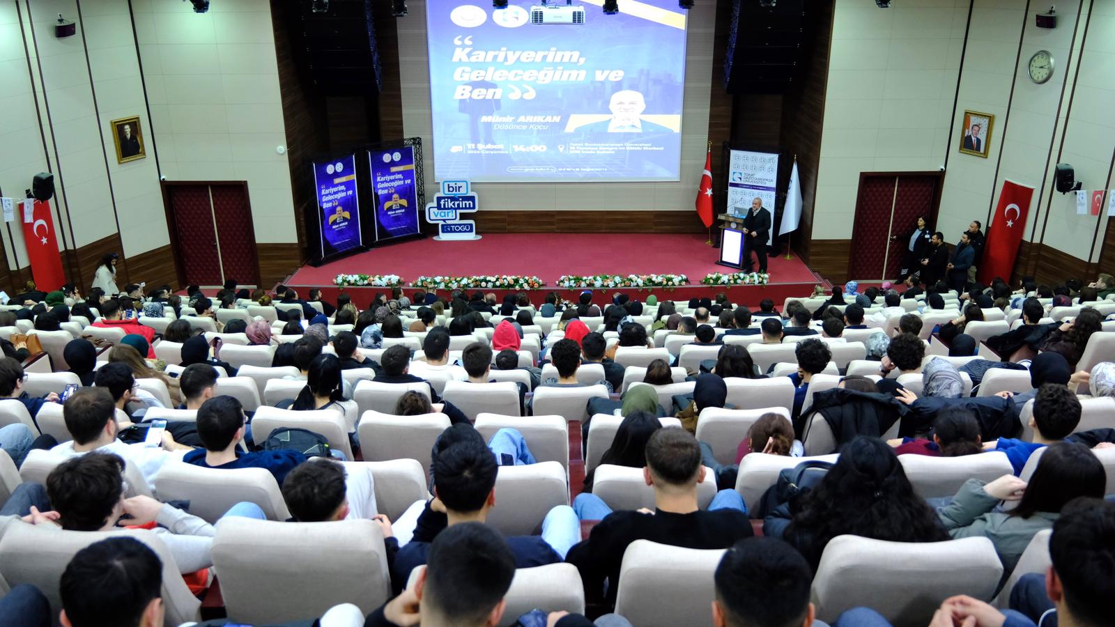 Etkinliğe TOGÜ Rektörü Prof. Dr. Fatih Yılmaz, Rektör yardımcıları Prof. Dr. Rasim Koçyiğit ve Prof. Dr. Yusuf Temür, rektör danışmanları, İl Milli Eğitim Müdürü, akademik ve idari personel ile öğrenciler katıldı. Programa konuşmacı olarak katılan Düşünce Koçu Münir Arıkan, gençlerle kariyer yolculuğu üzerine kapsamlı bir paylaşımda bulundu.