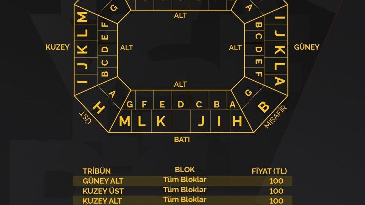 Güney Alt Tribün bilet fiyatı: 100 TL.