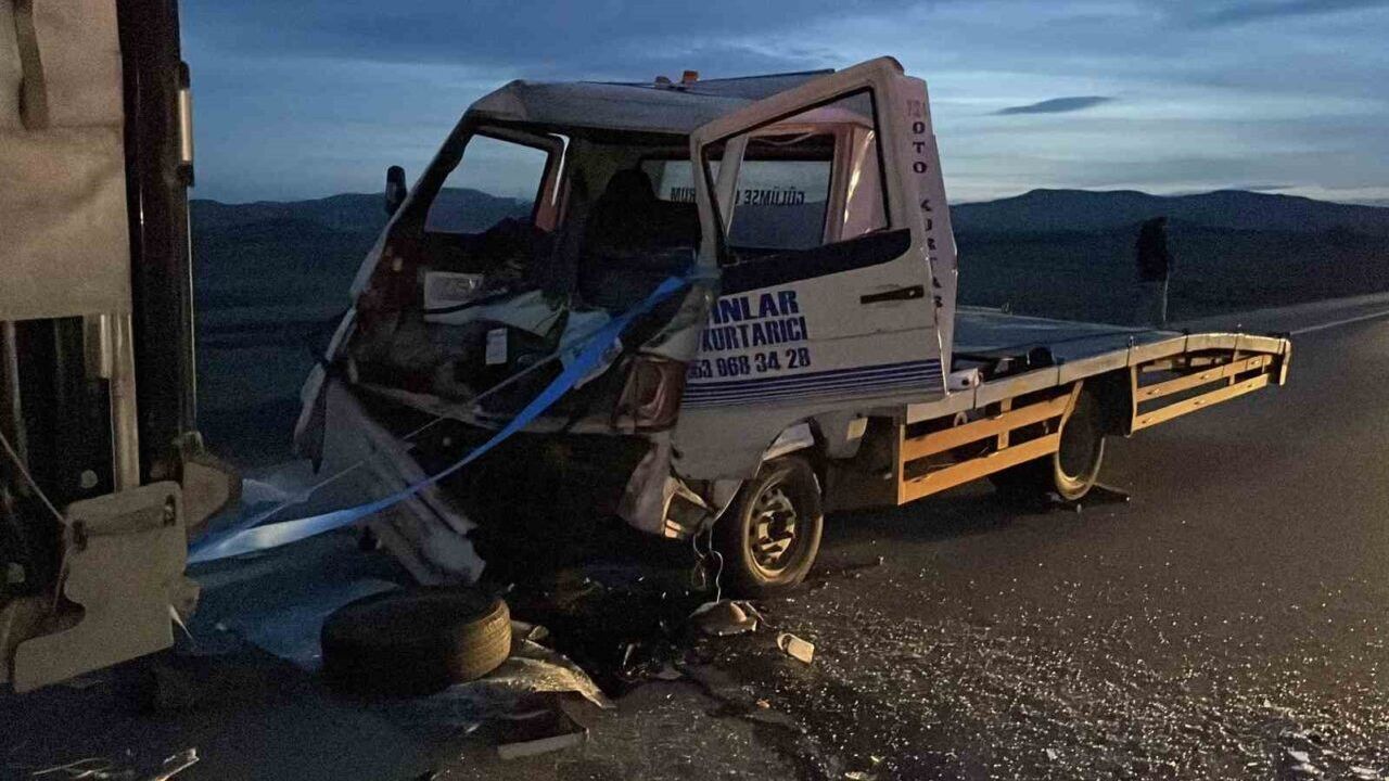 Tarlaya uçan traktörü gören tır sürücüsü yardım etmek için durdu, traktör için olay yerine giden çekici ise duramayarak tıra arkadan çarptı.