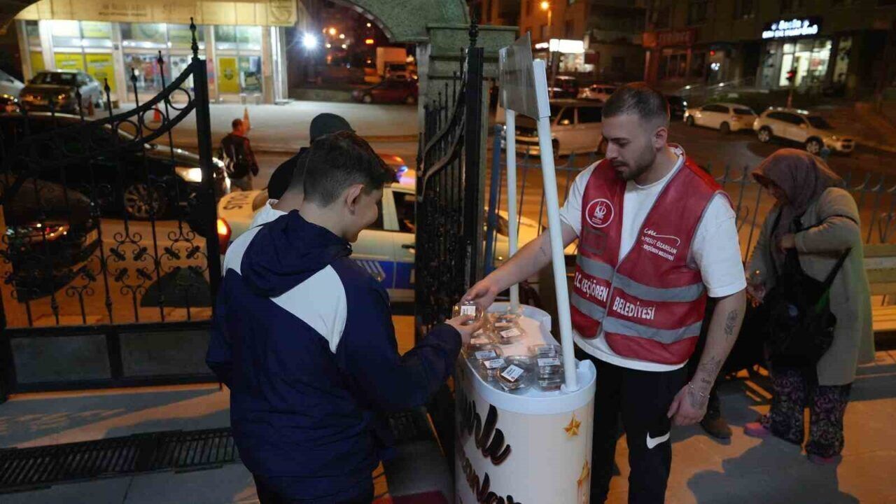 Keçiören Belediyesi, iftar saatinde trafikte ve yolda olan vatandaşlara içinde hurma, su ve sandviç yer alan kumanyalar dağıtırken, teravih namazından sonra da camilerde tatlı ikramı yapıyor.