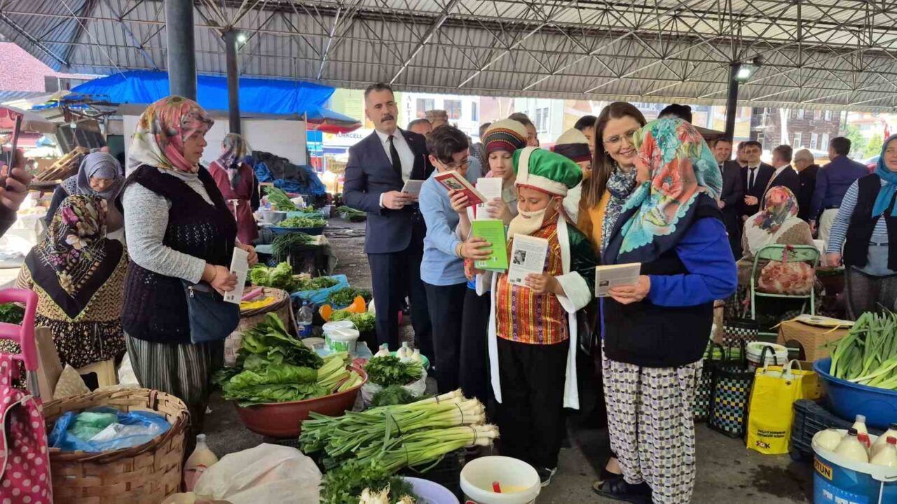 Stantları tek tek gezerek projeler hakkında bilgi alan Vali Nurtaç Arslan, beraberindeki protokol ve öğrenciler, Bartın’ın tarihi Galla (Kadınlar) Pazarı’na giderek köylü kadınlara kitap dağıttı. Vali Arslan ve öğrenciler burada okuma yazması olan kadınlara ve çocuklarına bol bol kitap okumaları önerisinde bulundu.