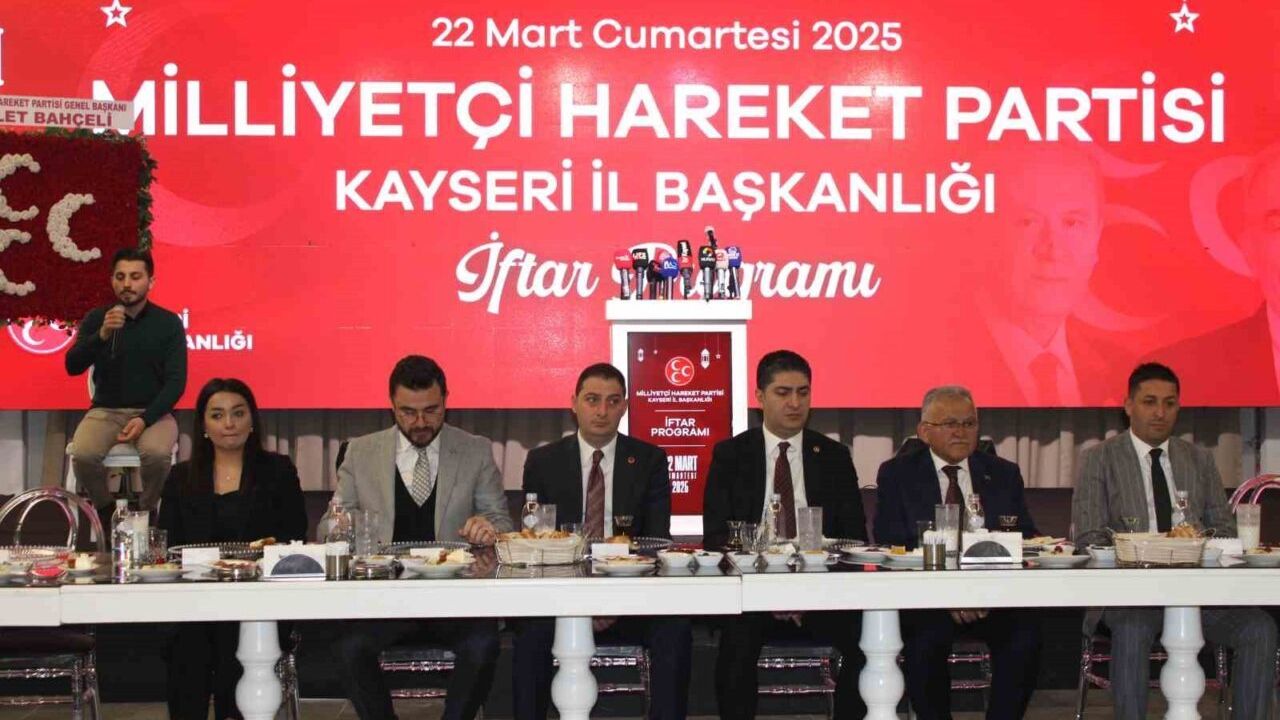 MHP Kayseri İl Teşkilatı tarafından iftar programı düzenlendi. Düzenlenen programda konuşan MHP İl Başkanı Enes Ertuğrul Kalın, MHP Genel Başkanı Devlet Bahçeli’ye ’Sen evinde otur’ diyen CHP Milletvekili Ali Mahir Başarır’a cevap verdi. Kalın, "İstanbul Cumhuriyet Başsavcılığı tarafından CHP’li belediyelere karşı operasyonlar düzenlenmektedir. Bu operasyonlara karşılık ne yazık ki bazı partili yöneticiler vatandaşları sokağa çağırmaktadır. Bu çağrıya karşılık da bilge liderimiz Devlet Bahçeli; sokakların karanlığını, sokaklardan bu ülkeye yarar gelmeyeceğini, sokak eylemlerinin olumsuz sonuçlarını defalarca tecrübe ettiğini beyan ederek herkesi evinde kalmaya davet etmiştir. Ancak ne yazık ki şaibeli kongrelerin sahne sanatçısı Ali Mahir Başarır ismindeki bir milletvekili hadsizce genel başkanımıza dil uzatarak ’sen evinde otur’ demiştir. Ülküdaşlarım; buradan Ali Mahir Başarır’a seslenmek istiyorum, Ali Mahir bu saatten sonra asıl sen evinden çıkma. Çünkü yiğit akan Fırat’ın Erciyes’in bozkurtlarının hafızasına işlemiştir. Lağım kokan ağzından dökülen sesler, Erciyes’in bozkurtlarının zihinlerinde hala yargılanmaktadır. Ülkücü, milliyetçi hareket liderine gönülden bağlı, unutma bundan sonra adım atacağın her sokakta binlerce var olacaktır. Liderin daimi muhafızları olarak sesleniyorum, bu zamana kadar bilge liderimize söz ettirmedik, ettirmeyiz. Dalımızı koparmaya çalışanların da ağacını kökünden keseriz" dedi.