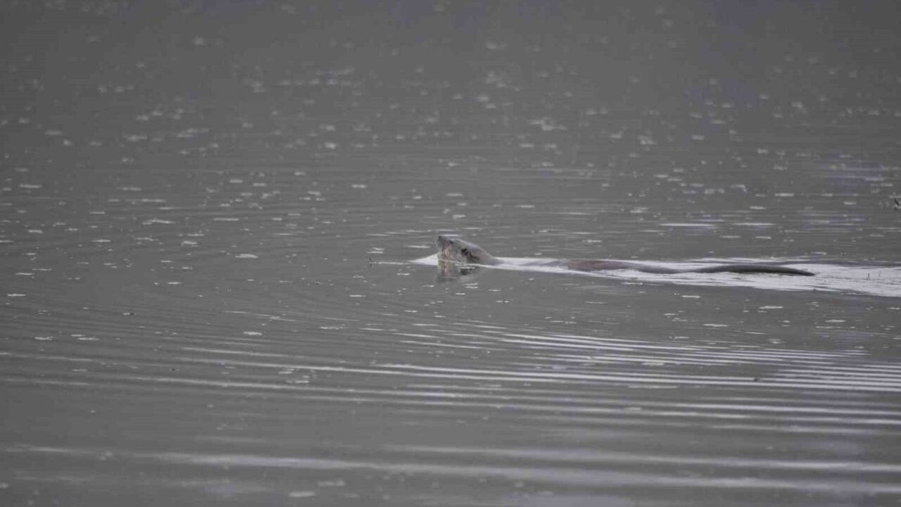 Kısa süreliğine su yüzeyine çıkan su samuru, bir süre sonra gözden kayboldu.