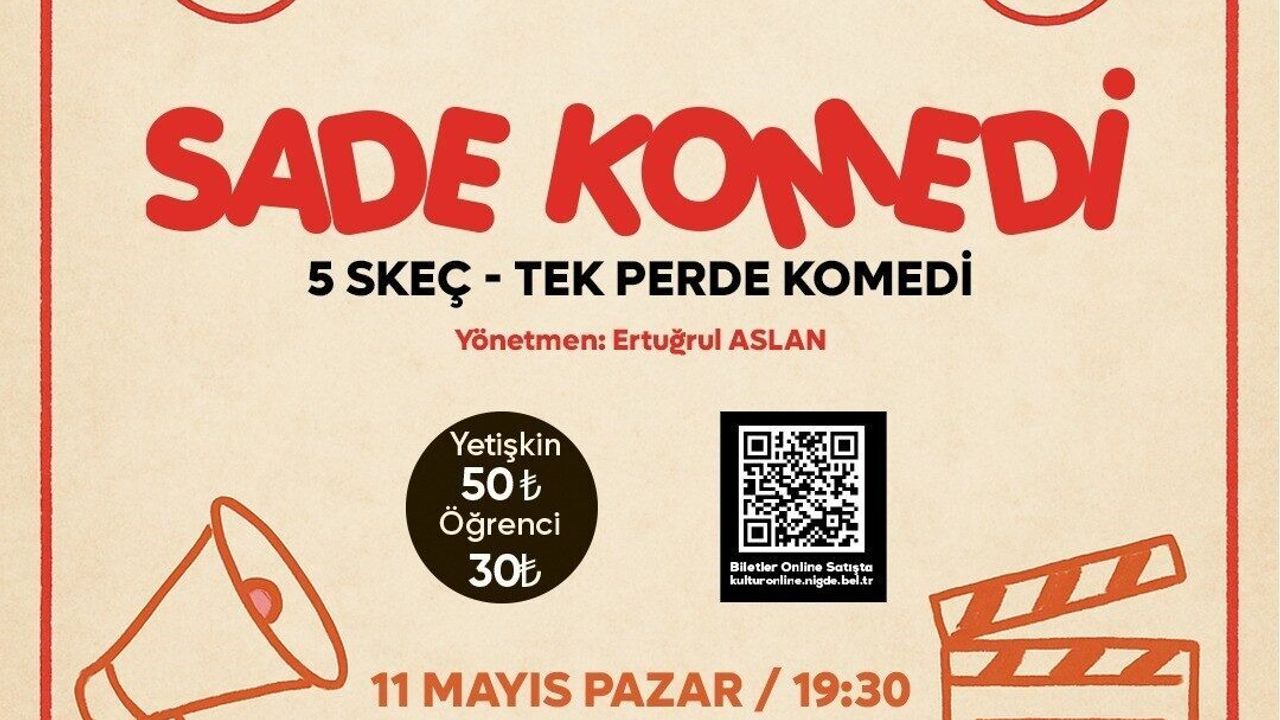 Yönetmenliğini Ertuğrul Aslan’ın üstlendiği ’Sade Komedi’, beş farklı skeçten oluşuyor. Her skeç, izleyiciyi gündelik hayatın içinde sıkça karşılaştığı olaylara farklı bir gözle bakmaya davet ediyor. Mizahın diliyle toplumsal davranışlar, insan ilişkileri ve alışkanlıklar eleştirel bir bakışla sahneye taşınıyor. Oyunun temposu yüksek, dili sade ve samimi. Seyirciyi sadece güldürmekle kalmıyor, aynı zamanda düşündüren ve kendini sorgulatan bir yapıya da sahip. Niğde Belediyesi, etkinliğin herkes tarafından ulaşılabilir olması için bilet fiyatlarını uygun seviyede tuttu. Yetişkin biletleri 50 TL, öğrenci biletleri ise 30 TL olarak belirlendi. Bilet satışları, belediyeye ait kultursanat.nigde.bel.tr adresinden online olarak yapılıyor.