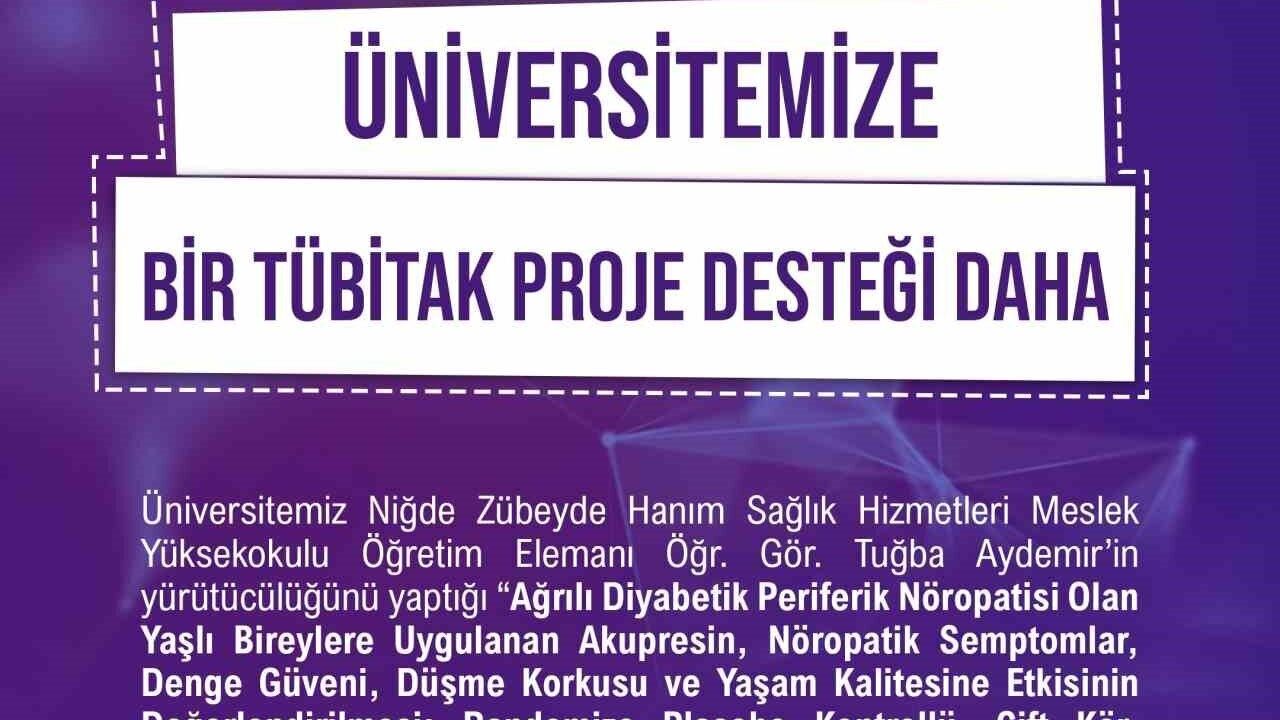 Niğde Ömer Halisdemir Üniversitesi Niğde Zübeyde Hanım Sağlık Hizmetleri Meslek Yüksekokulu Öğretim Elemanı Öğr. Gör. Tuğba Aydemir’in yürütücülüğünü yaptığı proje destek almaya hak kazandı.