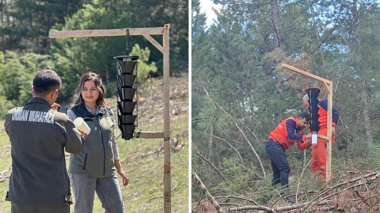 Mudurnu Orman İşletme Müdürlüğü, orman sağlığını tehdit eden, ‘On İki Dişli Çam Kabuk Böceği’ tehlikesine karşı ormanlık alanlara yerleştirilen feromon tuzakları sayesinde böcekleri yakalayarak imha ediyor.