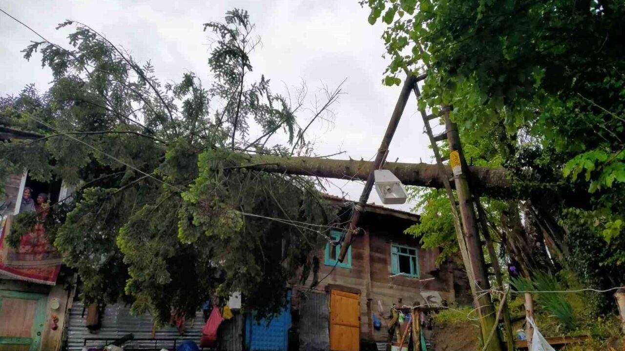 Karabük’ün Yenice ilçesine bağlı Değirmenyanı köyünde şiddetli rüzgar nedeniyle devrilen ağaç, bir evde hasara yol açtı.