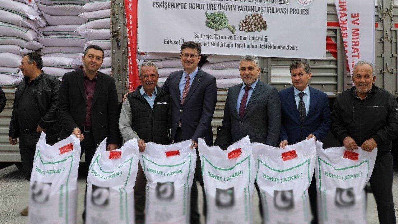 Eskişehir’de Tarım ve Orman Bakanlığı tarafından yürütülen proje kapsamında, nadasa ayrılan alanların değerlendirilerek tarıma kazandırılması ve tarım arazilerinin daha etkin kullanılması amacıyla Sivrihisar’da nohut üretimi yapan 32 çiftçiye yüzde 50 hibeli olarak 10 bin 800 kilogram tohum desteği sağlandı.