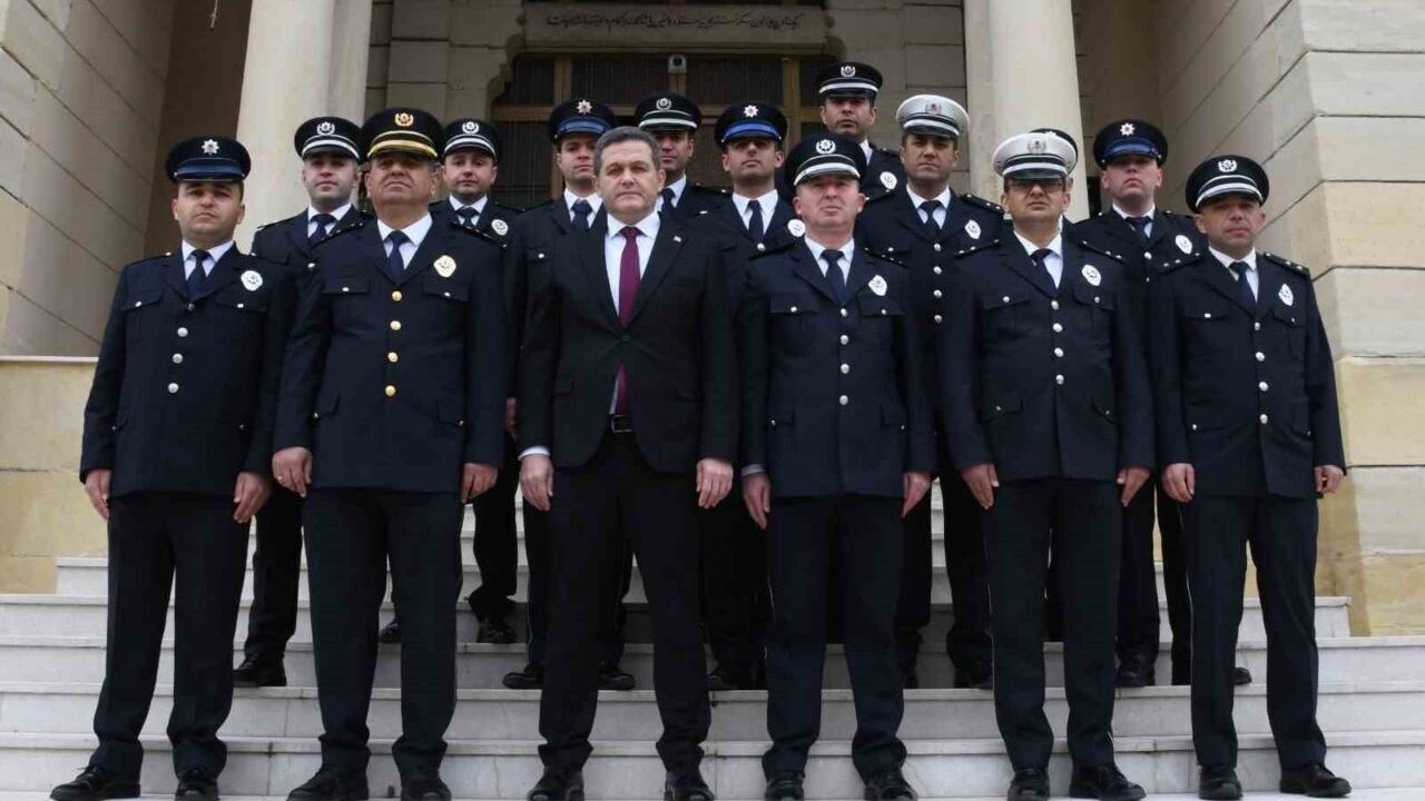 Kastamonu İl Emniyet Müdürü Kayhan Ay ve personeli, tarihi Kastamonu Valiliği binası önünde 88 yıl önce çekilen fotoğraftaki aynı pozu vererek fotoğraf çektirdi.