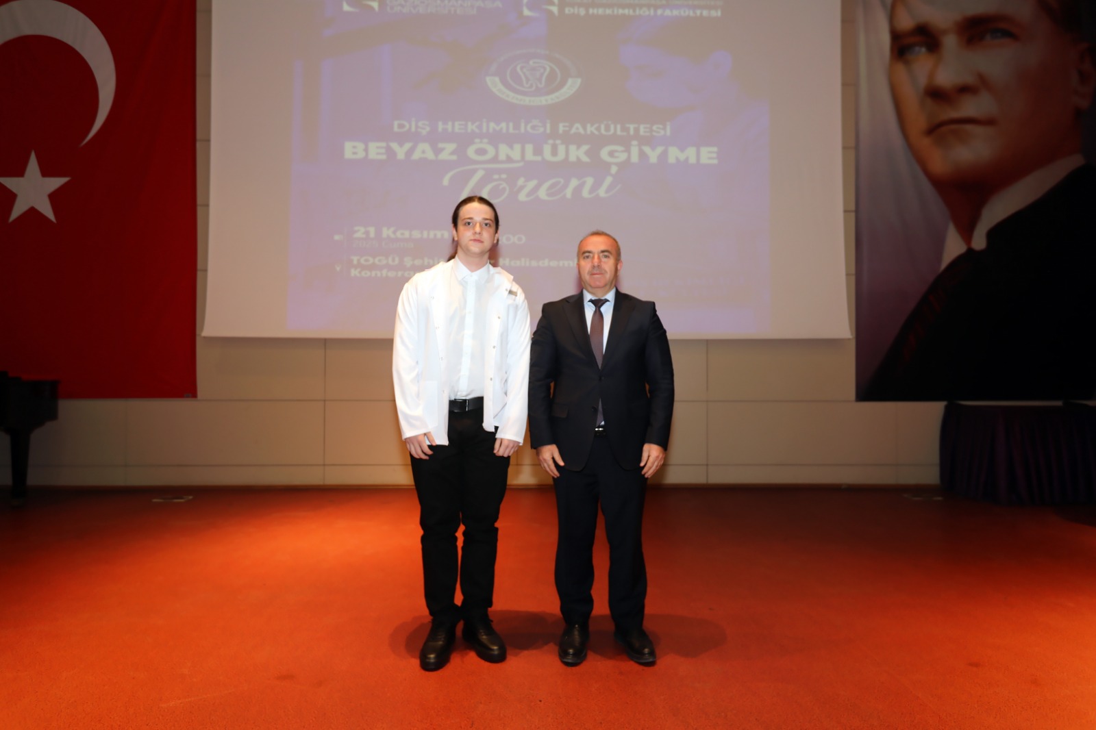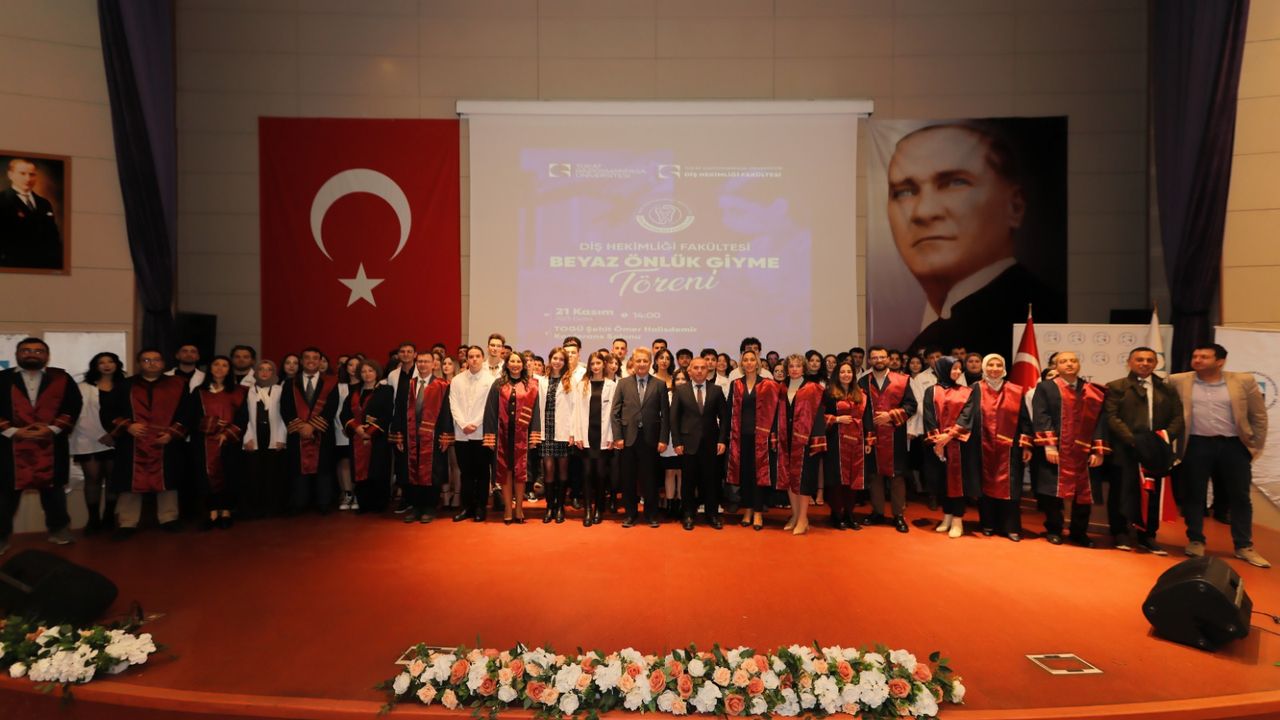 Törende Diş Hekimliği Fakültesi birinci sınıf öğrencilerine beyaz önlükleri öğretim üyeleri tarafından giydirildi. Tören, toplu fotoğraf çekiminin ardından sona erdi.