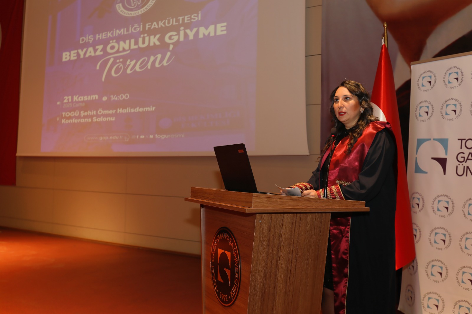 Diş Hekimliği Fakültesi Dekanı Prof. Dr. Işıl Sarıkaya, konuşmasında fakültenin kuruluşundan bugüne geçirdiği gelişim sürecine değinerek öğrencilerin güçlü bir akademik gelenek içine adım attıklarını belirtti. Sarıkaya, beyaz önlüğün yalnızca bir giysi değil, tıbbi etik ve mesleki sorumluluğun sembolü olduğunu vurguladı.
