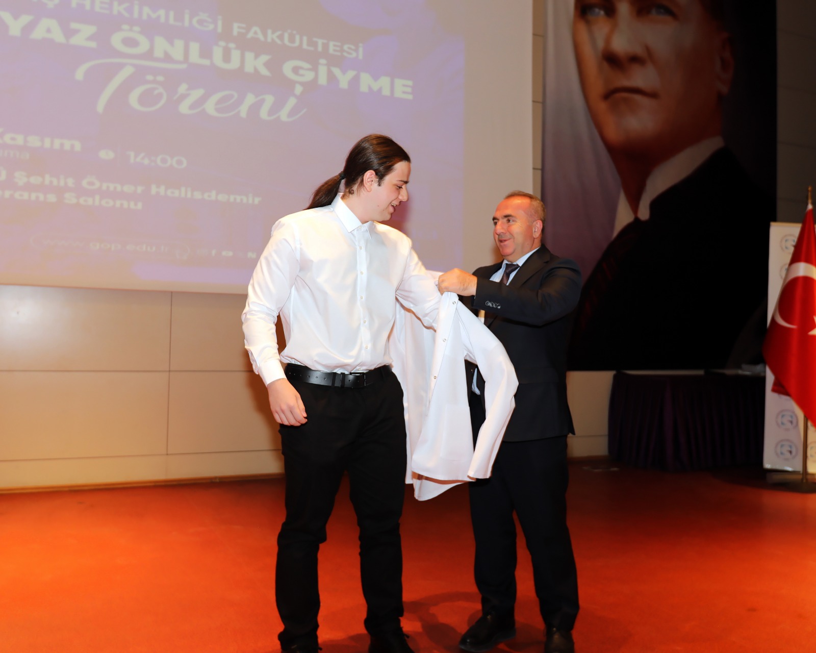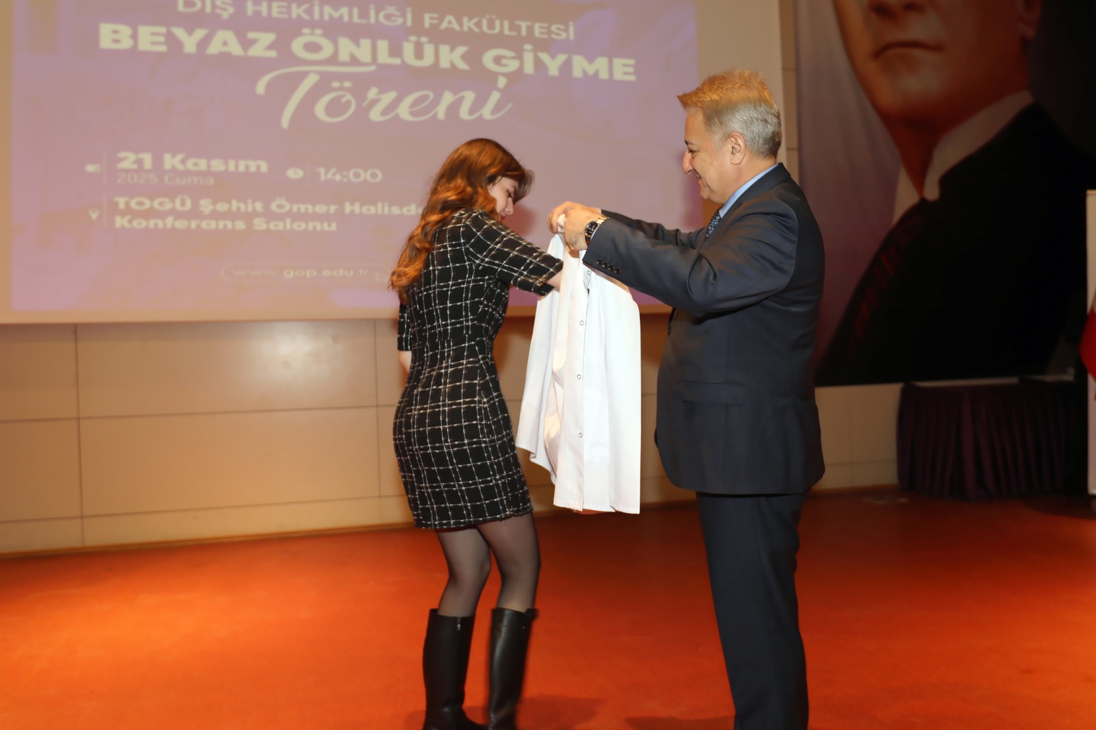 Prof. Dr. Işıl Sarıkaya, beyaz rengin temiz tutulması gereken meslek ahlakını, önlüğün ütüsünün ise diş hekimliği mesleğinde karşılaşılabilecek her türlü zorluğa rağmen bozulmaması gereken çalışma disiplinini temsil ettiğini ifade etti. Ayrıca öğretim üyelerinin öğrencilerine önlük giydirmesinin, usta–çırak ilişkisinin ve güçlü bir mesleki geleneğin sürdüğünü gösterdiğini dile getirdi. Sarıkaya, öğrencilerin bu değerleri benimseyerek meslek yaşamlarına sağlam adımlarla başlamalarını temenni etti.