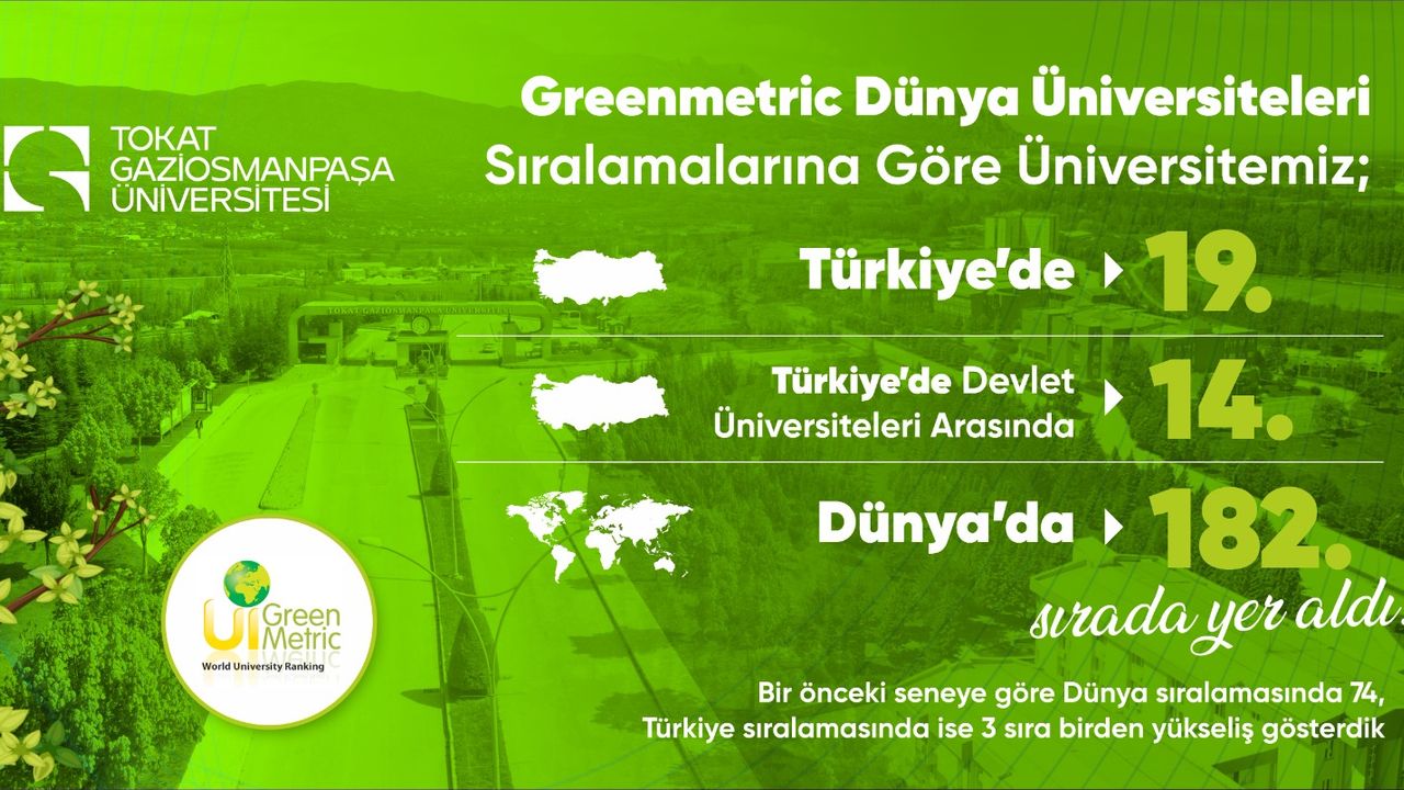 Dünyanın farklı coğrafyalarından binlerce üniversitenin değerlendirildiği GreenMetric Sıralamasında TOGÜ, bu yıl 182. sıraya yerleşerek önceki yıla göre 74 basamak birden yükseldi.