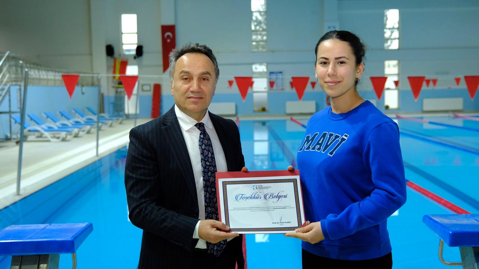 Rektör Prof. Dr. Fatih Yılmaz, sergiledikleri örnek davranış dolayısıyla öğrenciler İrem Öğüt ve Zeynep Sıla Durhal’ı tebrik ederek kendilerine teşekkür belgelerini takdim etti. Rektör Yılmaz, bu tür duyarlı ve sorumluluk sahibi tutumların üniversitenin toplumsal bilinç ve dayanışma anlayışını yansıttığını ifade etti.