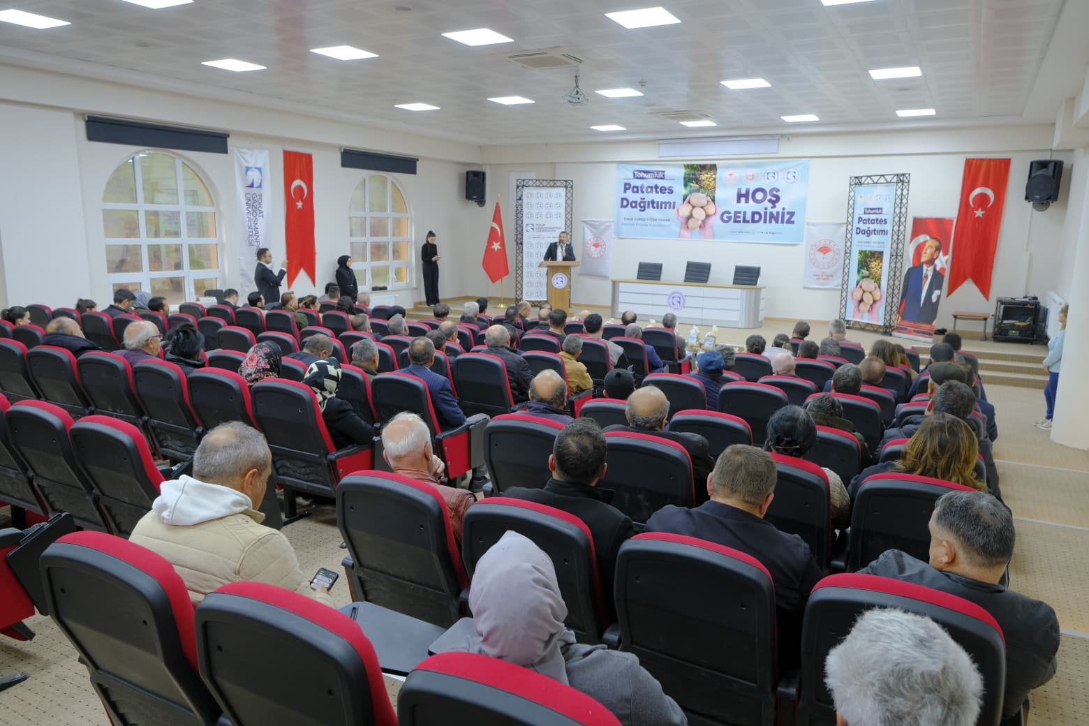 Ziraat Fakültesi Dekanı Prof. Dr. Resul Gerçekcioğlu konuşmasında, 2020 yılından bu yana sürdürülen proje kapsamında geliştirilen ve tescili gerçekleştirilen yerli patates çeşitleri Başçiftlik Beyazı ile Güngörbeye ait temel kademe tohumlukların, bu yıl da bölge çiftçilerine ücretsiz olarak dağıtıldığını belirtti. Gerçekcioğlu, söz konusu yerli çeşitlerin bölgedeki üretim kapasitesini artırmayı hedeflediğini vurgulayarak, Reşadiye ve çevre ilçelerden gelen üreticilerin tohumluklarını teslim alarak yeni üretim sezonu için hazırlıklara başlayacağını ifade etti. Katkı sunanlara teşekkür ederek konuşmasını sonlandırdı.