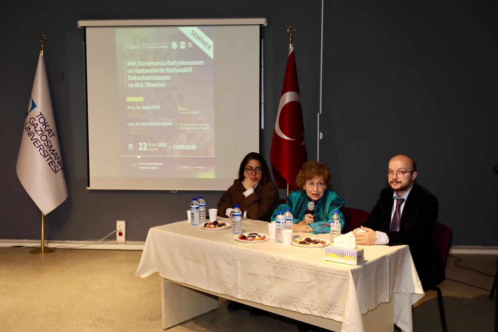 Hacettepe Üniversitesi Eczacılık Fakültesi Radyofarmasi Anabilim Dalı öğretim üyesi Doç. Dr. Mine Silindir Günay ise “Afet Durumunda Hastanelerde Radyoaktif Atıkların Yönetimi” konulu sunumunda, kriz anlarında hastanelerde oluşan radyoaktif atıkların sınıflandırılması, taşınması ve bertaraf edilmesine yönelik süreçleri detaylı şekilde anlattı.