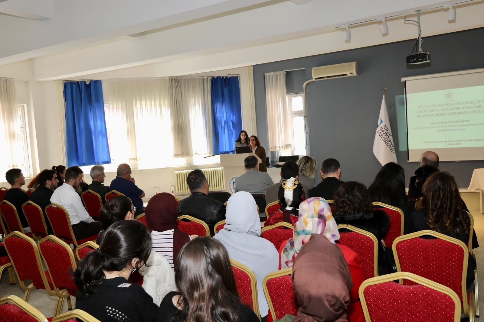 Etkinlikte, afet durumlarında radyasyondan korunma, radyoaktif maddelerin güvenli yönetimi ve hastanelerde uygulanması gereken dekontaminasyon süreçleri ele alındı. Akademisyenler, sağlık çalışanları ve öğrencilerin ilgi gösterdiği seminerde, güncel bilimsel yaklaşımlar katılımcılarla paylaşıldı.