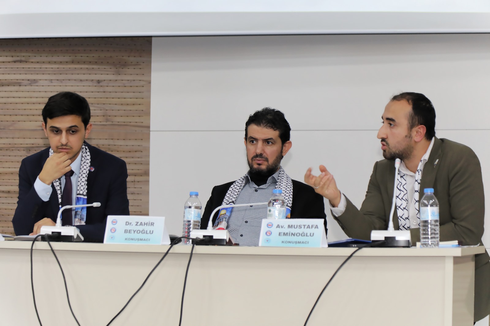 Konferans, TOGÜ İslami İlimler Fakültesi Konferans Salonu’nda yapıldı. Programda, Kudüs Hukuk Derneği Avukatı Mustafa Eminoğlu ile Filistinli gazeteci Dr. Zahir Beyoğlu konuşmacı olarak yer aldı. Konferansın ilk bölümünde Av. Mustafa Eminoğlu, “Soykırım Suçu ve Türkiye – İsrail Çifte Vatandaşlarının Yargılanması” başlıklı sunumuyla uluslararası hukuk bağlamında soykırım suçunun tanımı, yargılama süreçleri ve Filistin’de yaşanan hak ihlallerine ilişkin değerlendirmelerde bulundu. Programın ikinci oturumunda ise Filistinli gazeteci Dr. Zahir Beyoğlu, “Aksa Tufanı ve Filistin Mücadelesi” başlıklı sunumunda bölgedeki direnişin tarihsel arka planını, medya manipülasyonlarını ve Filistin davasının uluslararası kamuoyundaki yansımalarını aktardı. Etkinlik sonunda katılımcılar arasında kitap çekilişi yapıldı. Konferans, teşekkür belgesi takdimiyle sona erdi.