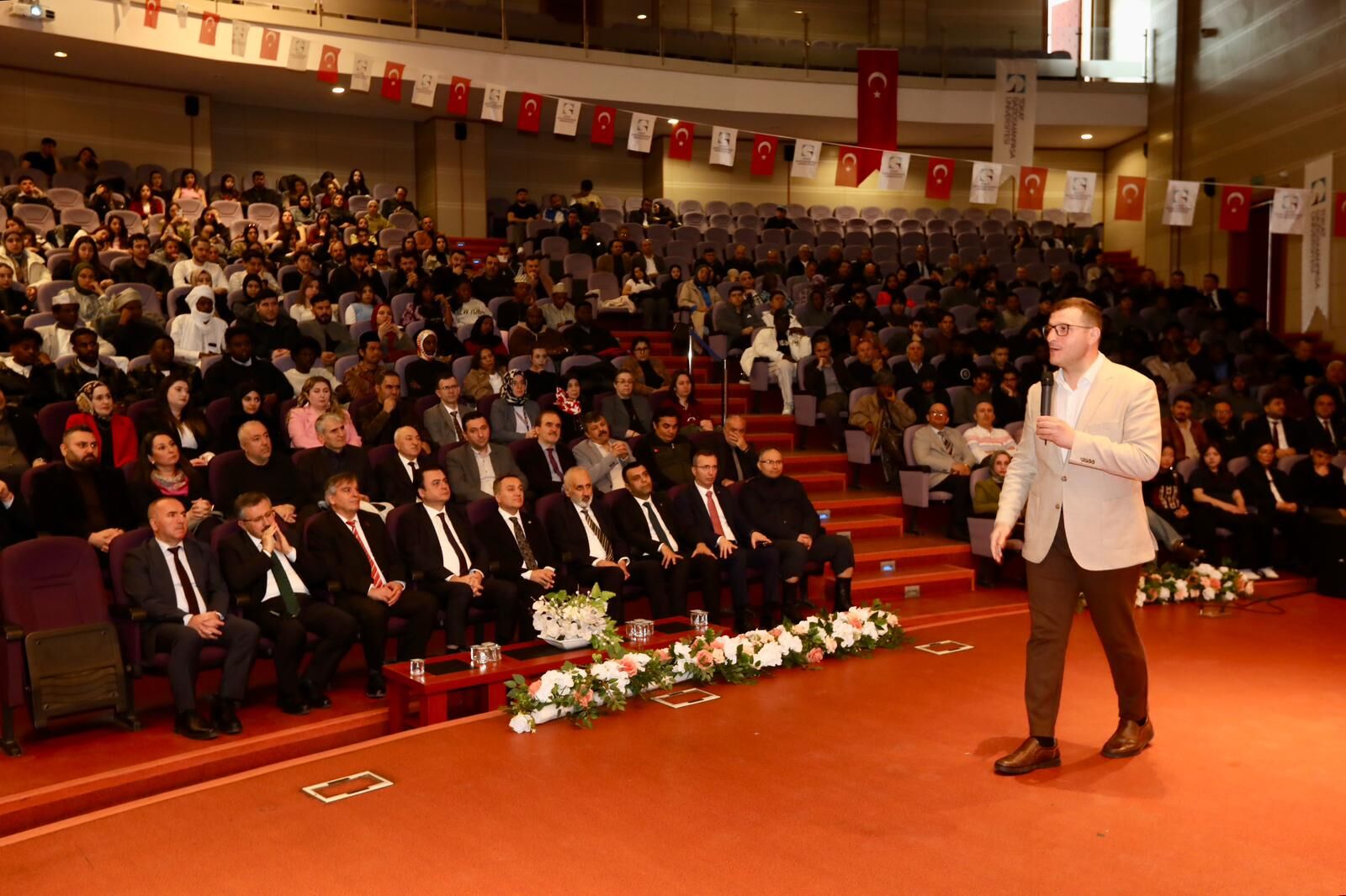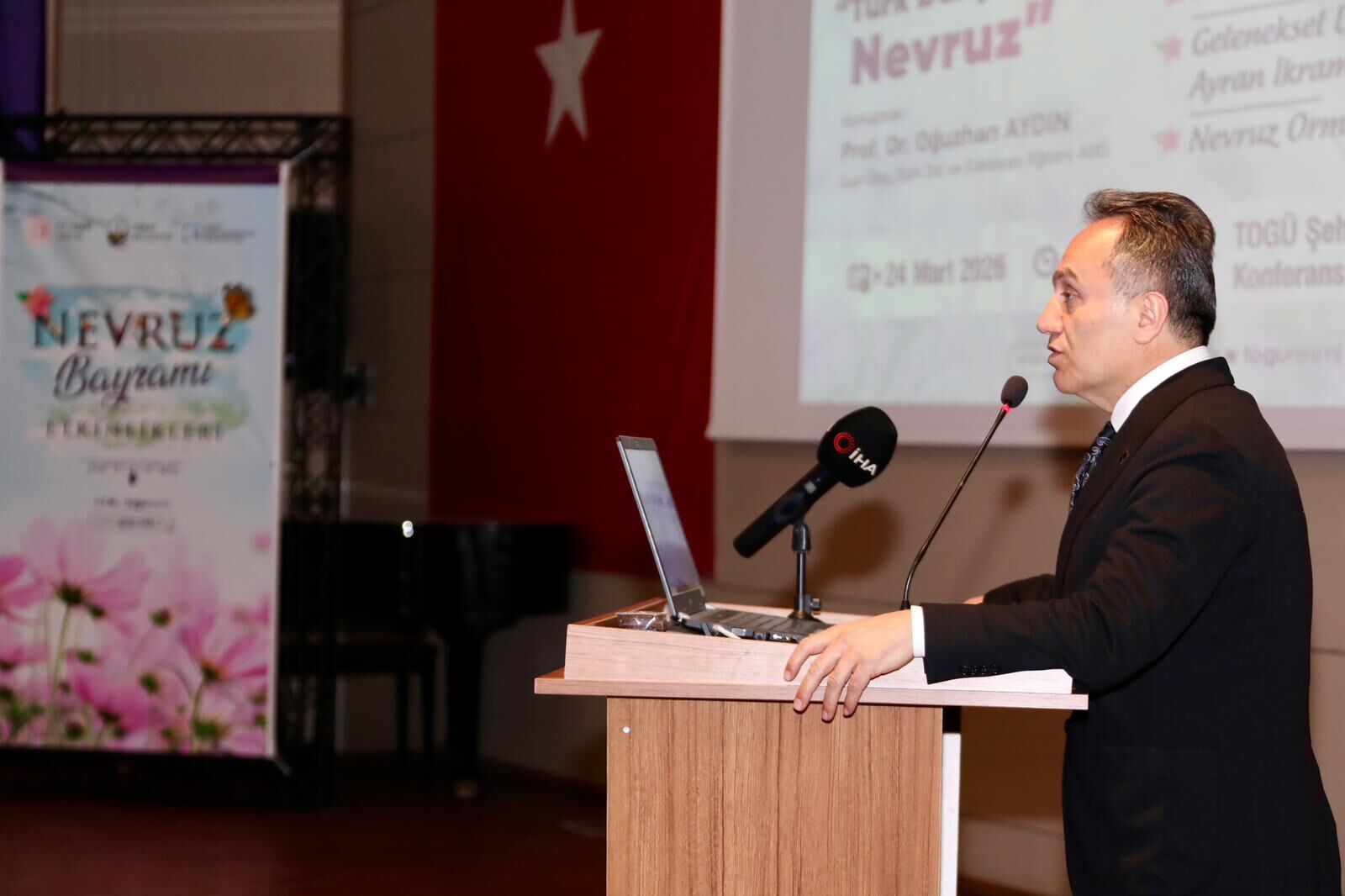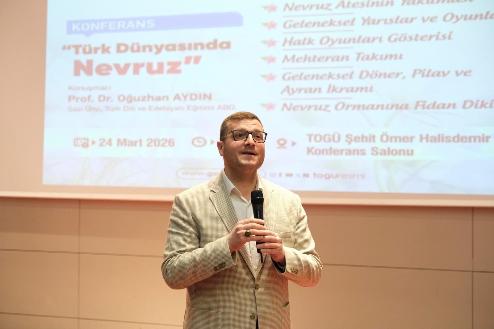 Program kapsamında Gazi Üniversitesi öğretim üyesi Prof. Dr. Oğuzhan Aydın tarafından “Türk Dünyasında Nevruz” başlıklı konferans verildi. Aydın, konuşmasında Nevruz’un Türk kültüründeki yerini tarihsel perspektifle ele alarak, bu geleneğin geçmişten günümüze taşıdığı anlamı detaylı şekilde aktardı. Nevruz’un tarih boyunca önemli bir kültürel dönüm noktası olduğunu ifade eden Aydın, konuşmasını şiirler ve anekdotlarla zenginleştirerek, bu özel günün toplumsal birlikteliği pekiştiren yönüne dikkat çekti. Nevruz’un insanları köklü bir kültürel mirasla buluşturduğunu belirten Aydın, “Nevruz geldiğinde gönüllerimiz açılır, birlik ve beraberliğimiz daha da güçlenir” ifadelerini kullandı. Program sonunda Vali Abdullah Köklü tarafından Aydın’a teşekkür belgesi takdim edildi.