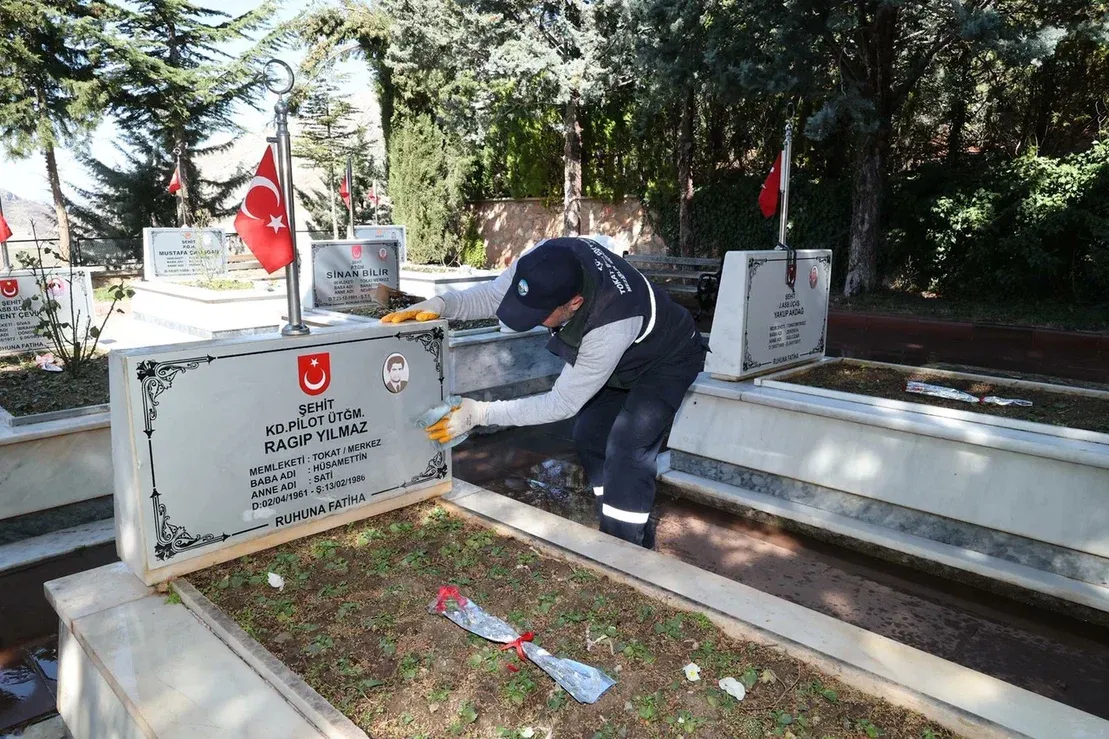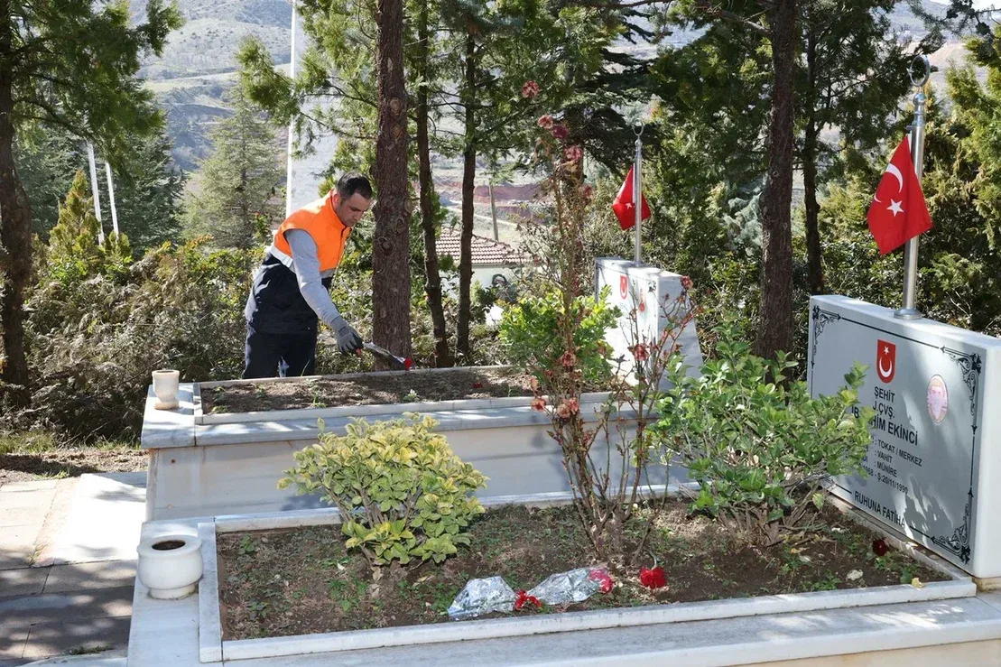 Belediye ekipleri tarafından başta şehitlikler olmak üzere Tokat’taki tüm mezarlıklarda ot temizliği, çevre düzenlemesi, yürüyüş yollarının bakımı ve genel temizlik çalışmaları titizlikle gerçekleştiriliyor. Bayram öncesinde yoğunlaşan ziyaretler göz önünde bulundurularak mezarlık alanlarının düzenli, temiz ve ziyaretçilere uygun hale getirilmesi hedefleniyor.