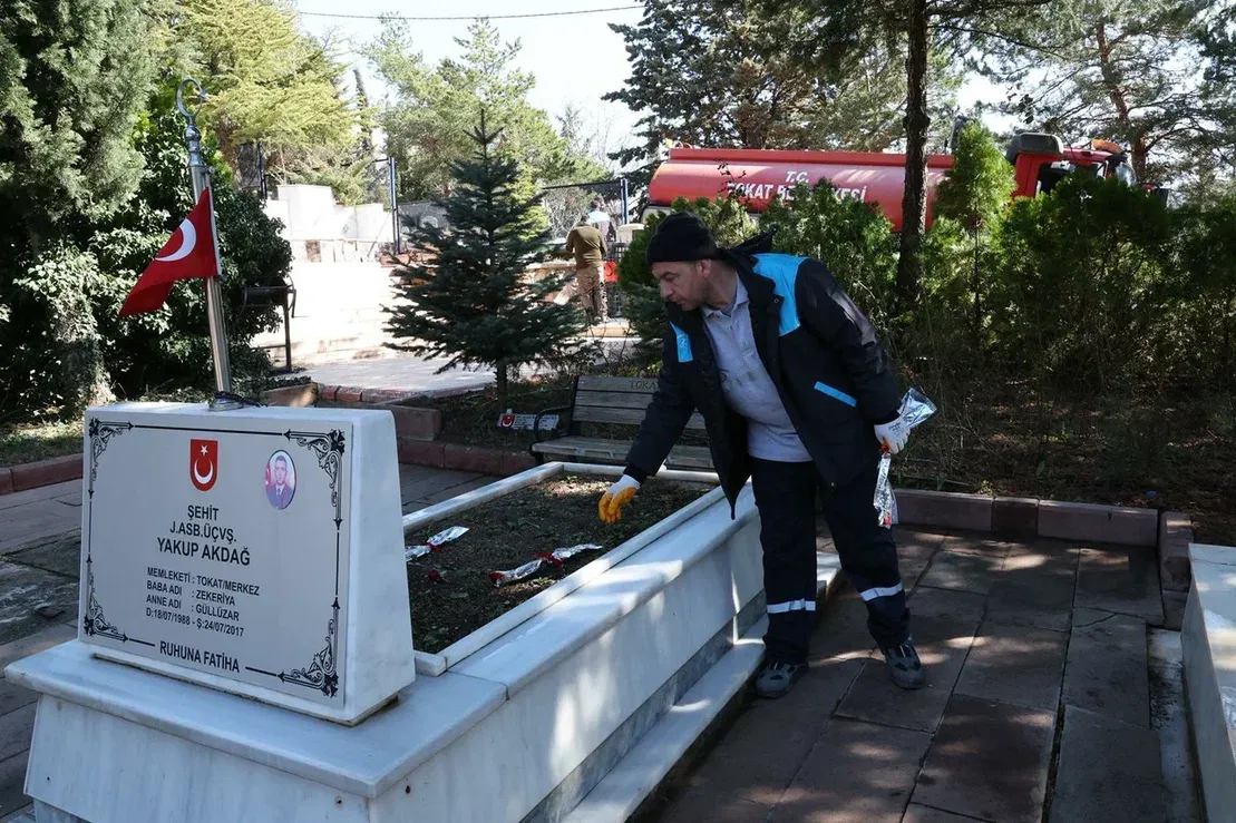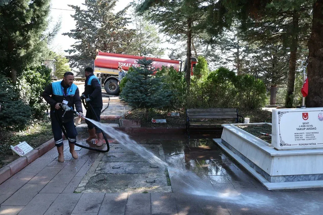 Belediye ekipleri tarafından başta şehitlikler olmak üzere Tokat’taki tüm mezarlıklarda ot temizliği, çevre düzenlemesi, yürüyüş yollarının bakımı ve genel temizlik çalışmaları titizlikle gerçekleştiriliyor. Bayram öncesinde yoğunlaşan ziyaretler göz önünde bulundurularak mezarlık alanlarının düzenli, temiz ve ziyaretçilere uygun hale getirilmesi hedefleniyor.