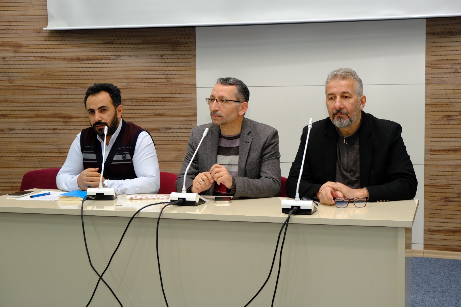 İslami İlimler Fakültesi Konferans Salonu’nda düzenlenen “Dini ve Kültürel Hayatta Ramazan” panelinde moderatör Dr. Öğr. Üyesi Faysal Arpaguş, panelistler Doç. Dr. Muhammet Okudan ve Doç. Dr. Alper Ay Ramazan ayını tarih, edebiyat ve dini musiki perspektiflerinden değerlendirdi.