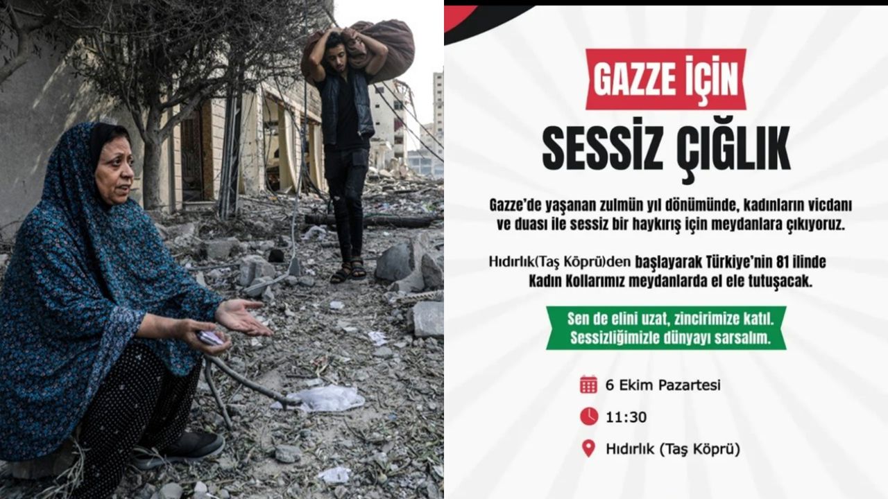 AK Parti Kadın Kolları tarafından yapılan açıklamada, etkinliğin sadece bir sessizlik eylemi değil, vicdanların sesi olacağı vurgulandı. Açıklamada şu ifadelere yer verildi: “Gazze’de yaşanan zulmün yıl dönümünde, kadınların vicdanı ve duası ile sessiz bir haykırış için meydanlara çıkıyoruz. Türkiye’nin 81 ilinde Kadın Kollarımız aynı anda meydanlarda el ele tutuşacak.”