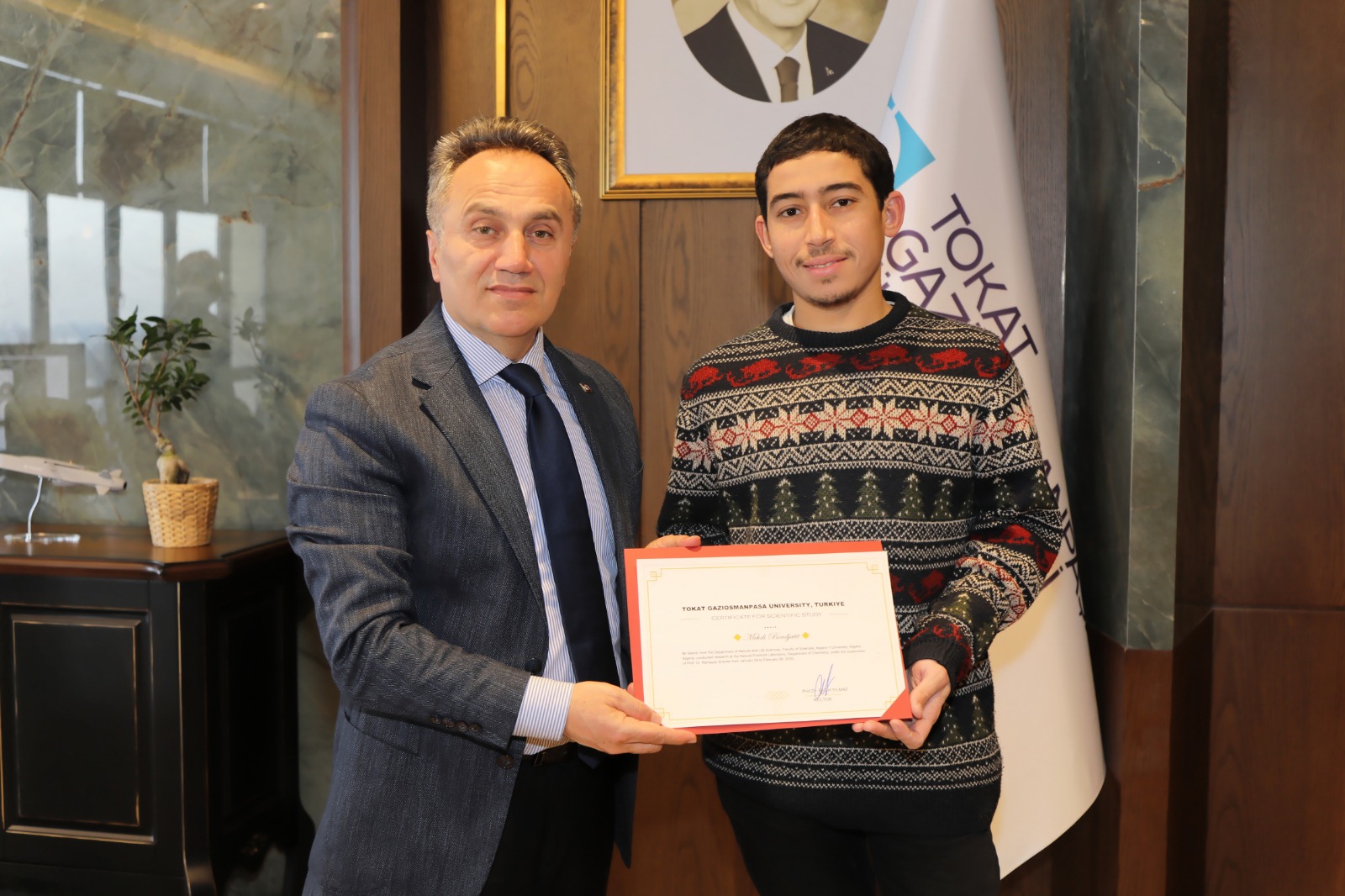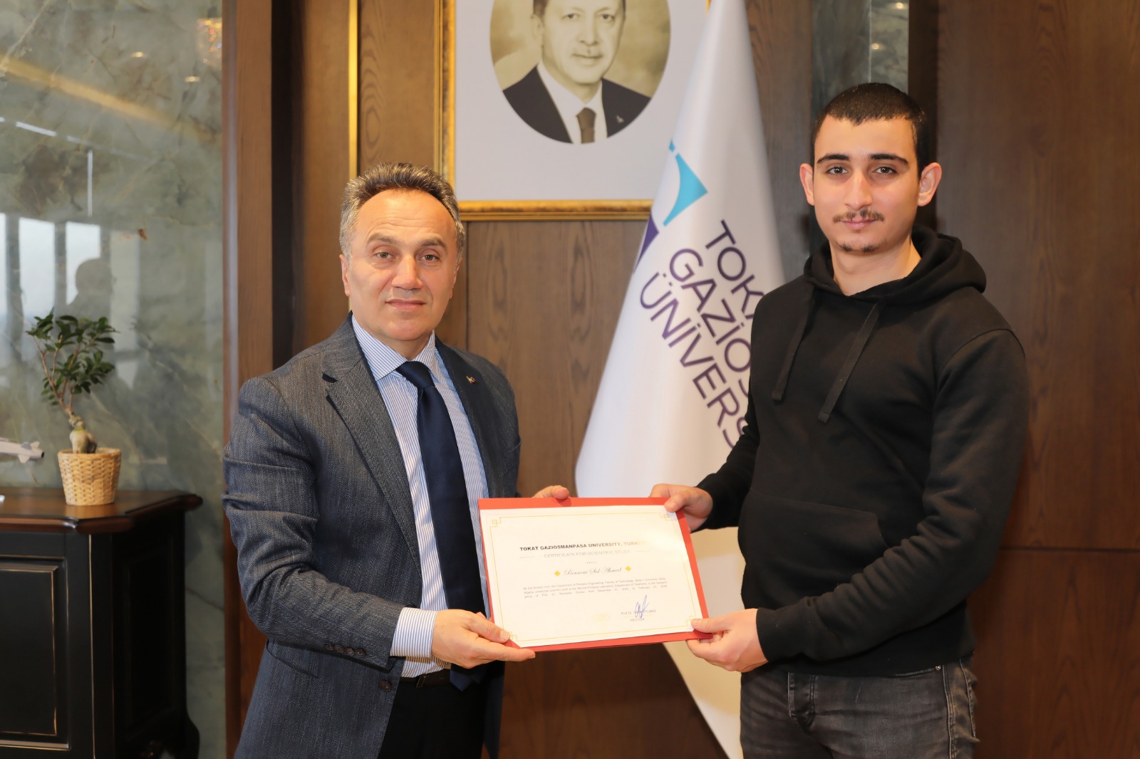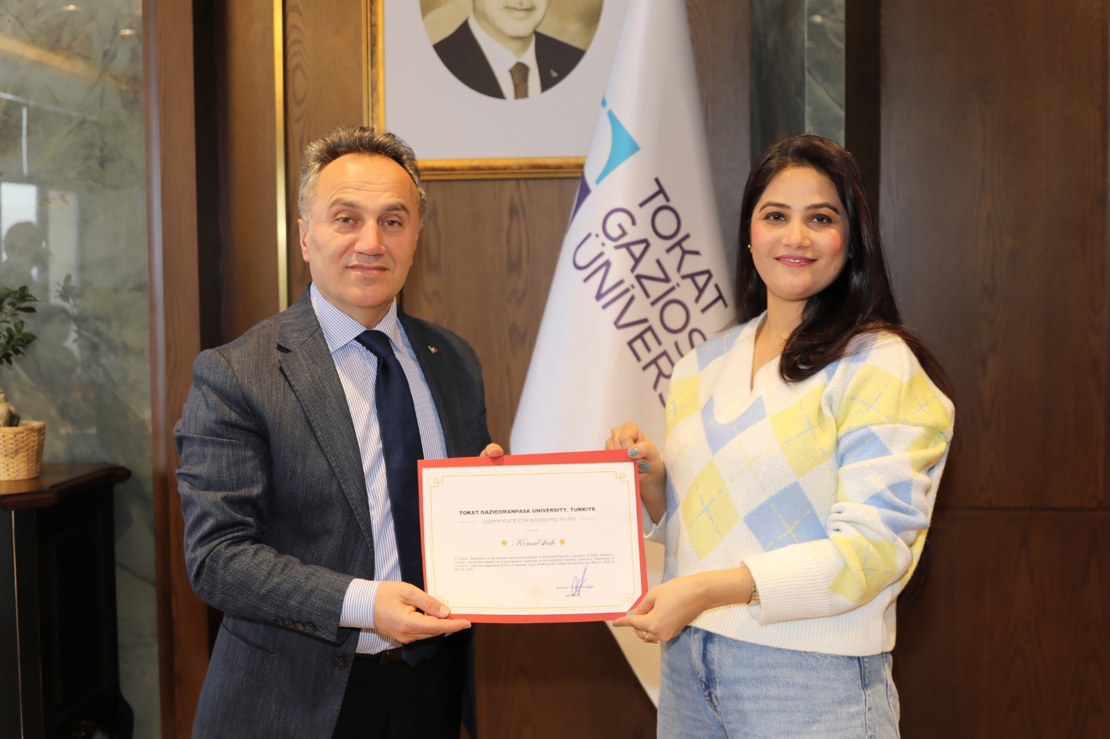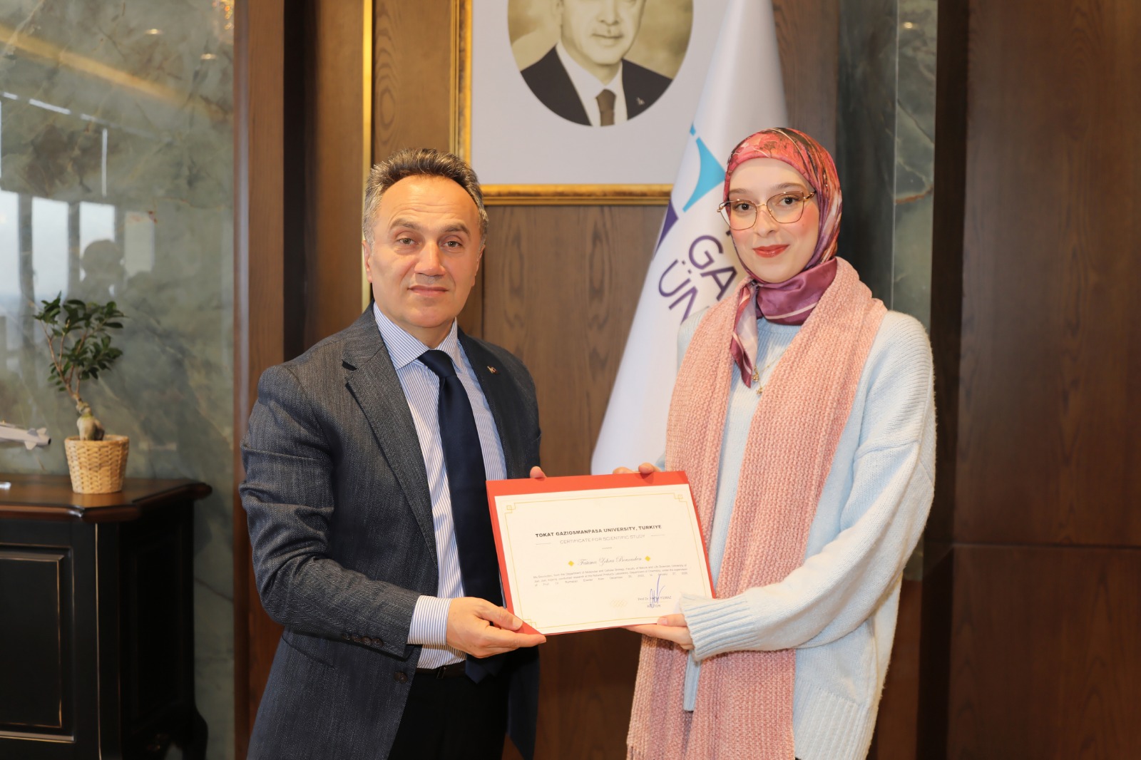 Ziyaretin sonunda, Tokat Gaziosmanpaşa Üniversitesinde yürüttükleri akademik çalışmalar dolayısıyla araştırmacılara sertifikaları Yılmaz tarafından takdim edildi. Ziyaret, hatıra fotoğrafı çekimiyle sona erdi.