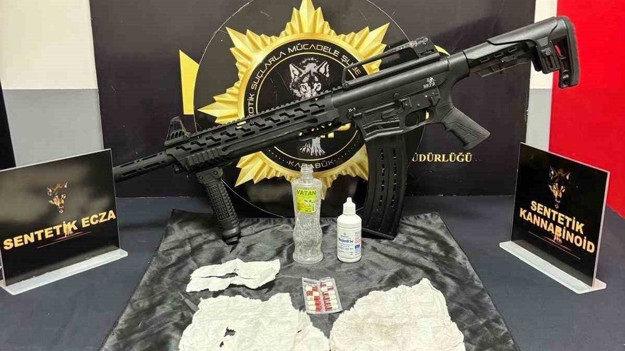Karabük Cumhuriyet Başsavcılığı koordinesinde İl Emniyet Müdürlüğü İstihbarat ve Narkotik Suçlarla Mücadele Şube Müdürlüğü ekiplerince, uyuşturucu ticaretinin önlenmesine yönelik yürütülen çalışmalar kapsamında operasyon düzenlendi. İl merkezinde gerçekleştirilen operasyonda, durumlarından şüphelenilen C.Y. ve E.D. isimli şüpheliler tespit edildi. Şahısların ikametlerinde yapılan aramalarda, peçeteye emdirilmiş halde 4 parça halinde toplam 7,12 gram sentetik kannabinoid (bonzai), 11 adet sentetik ecza (Lyrica), içerisinde AM2201 maddesi kalıntıları bulunan bir şişe, bir adet boş oksijenli su şişesi ve bir pompalı tüfek ele geçirildi.